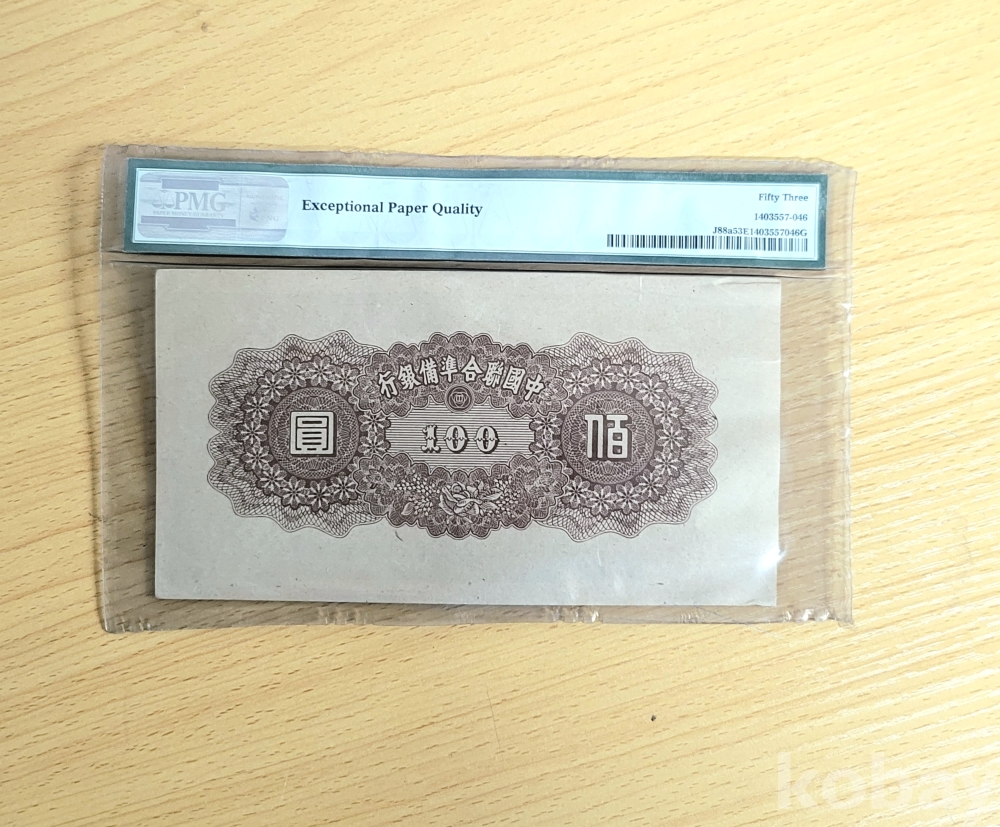 1945년 중국연합준비은행(Federal Reserve Bank of China)의 100위안 지폐입니다.
