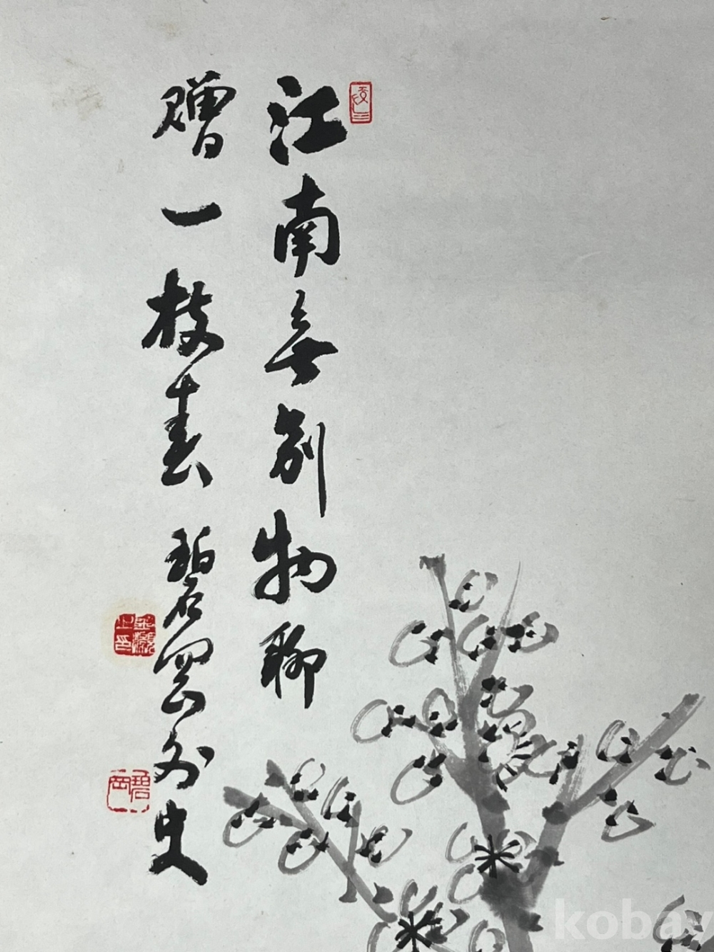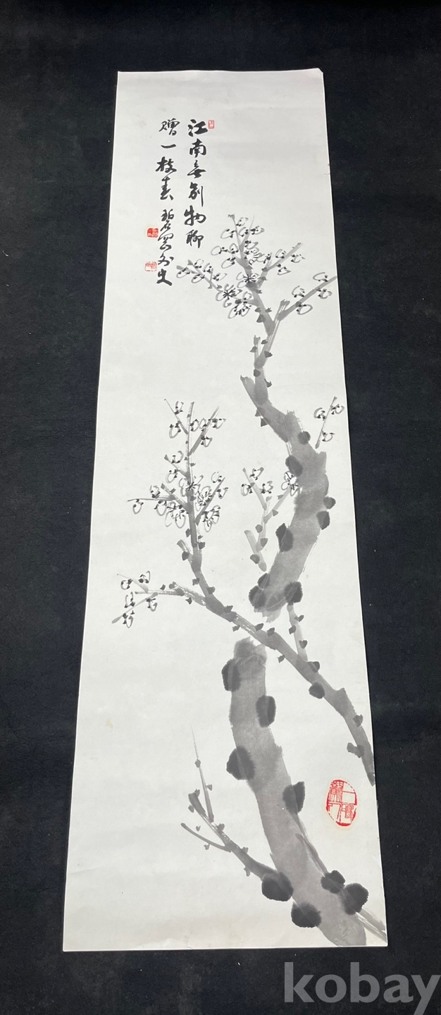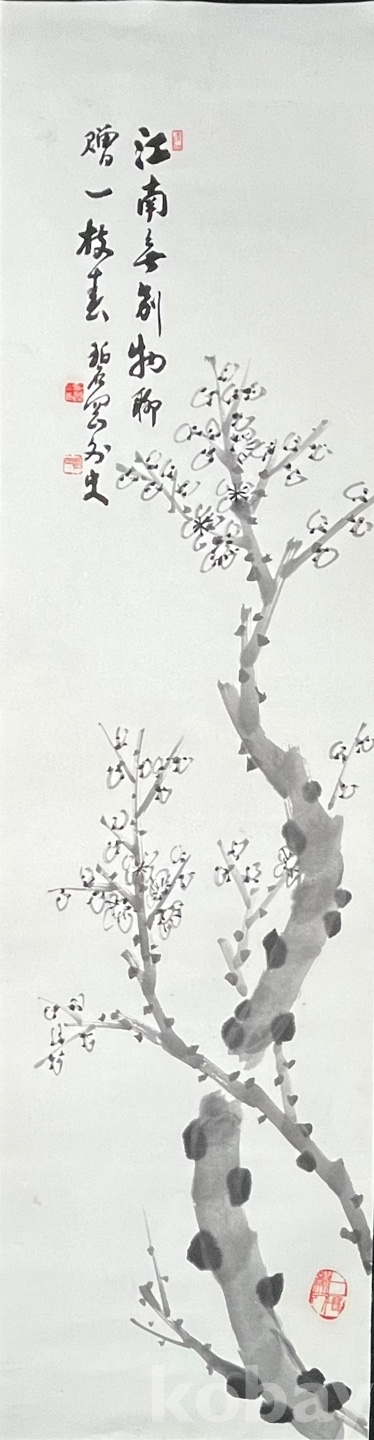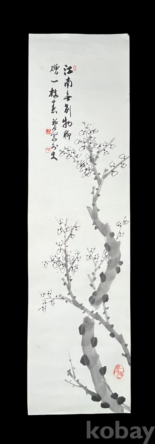 작품규격 : 가로35 세로130.3(cm) 이 작품은 벽강 김호 선생의 수묵 매화도입니다. 선생 특유의 담묵과 농묵을 자유 자래로 다루며, 매화의 고결한 정신성과 문인화의 품격을 잘 드러낸 작품입니다. 수묵의 담백함과 농묵의 대비를 이용하여 노목(老木)의 질감을 표현하였으며, 가지는 유려하면서도 절제된 곡선으로 구성되었습니다. 매화의 꽃망울과 만개한 꽃이 혼재되어 있어 생동감이 있으며, 봄의 도래와 생명력을 상징하고있습니다. 작품의 상단에 작가의 호인 벽강과 두인, 인장이 잘 찍혀 있습니다. 전통과 현대 문인정신의 조화를 보여주는 귀중한 작품입니다. 좋은 작품 소장하시는 기회 가지시길 바랍니다.