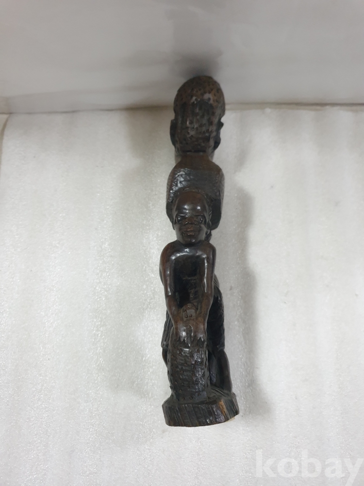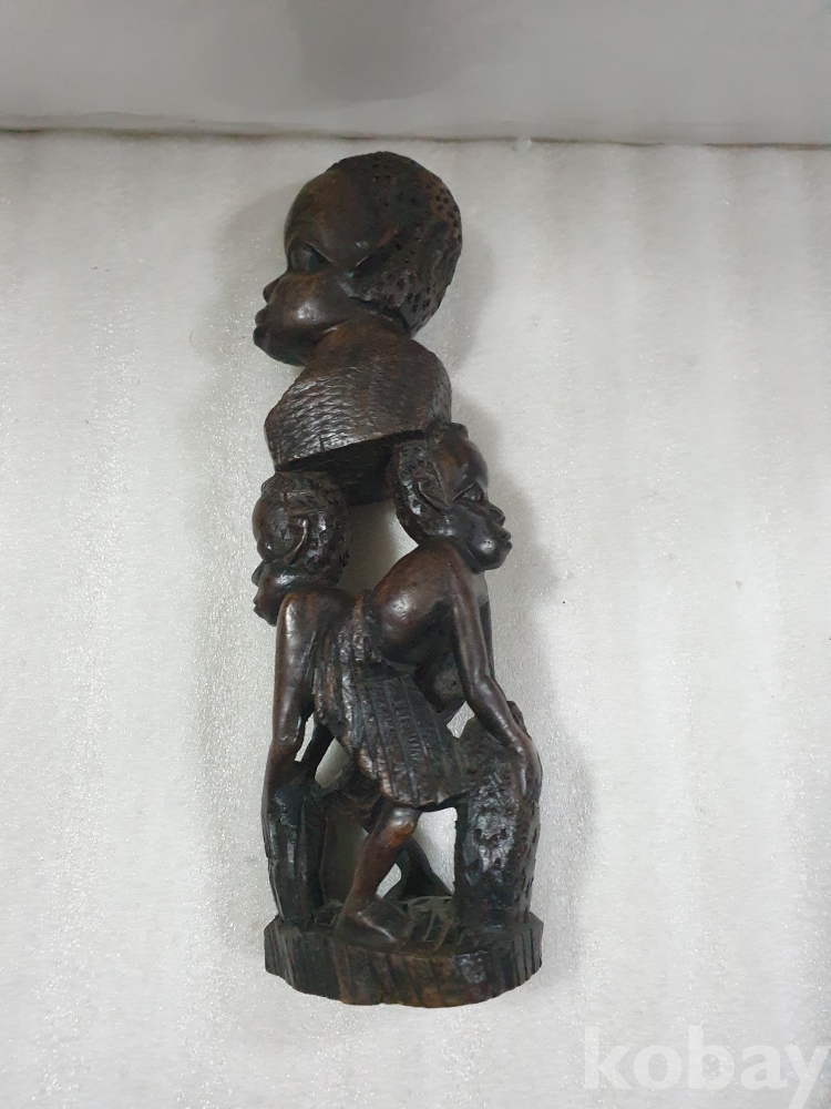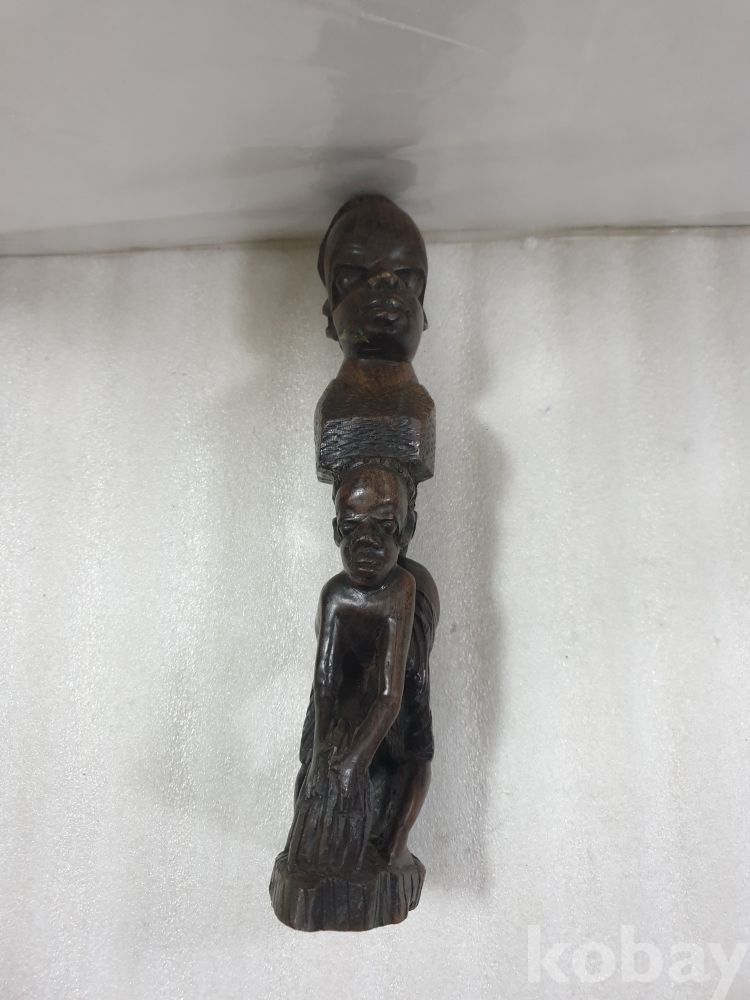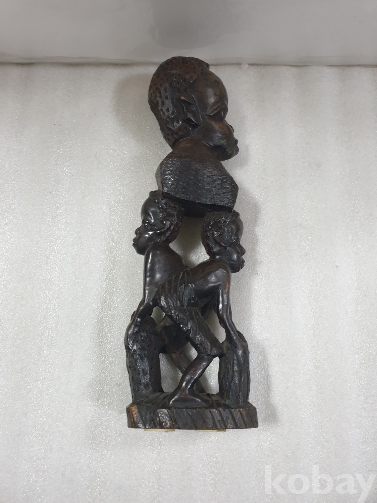 {천원경매}10-2204 3인 나무 조각품 (31cm)
