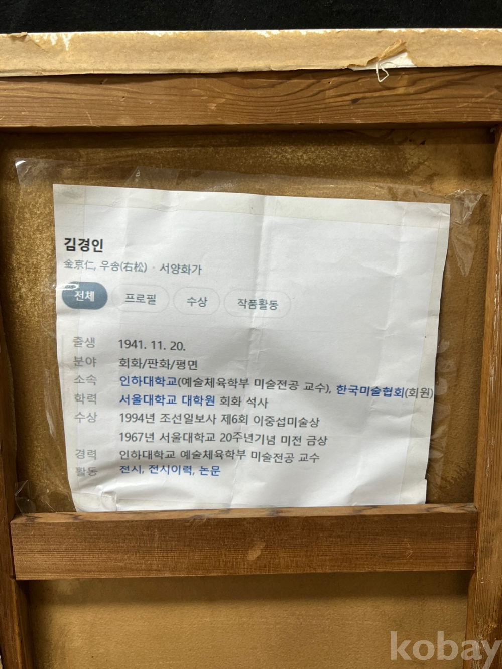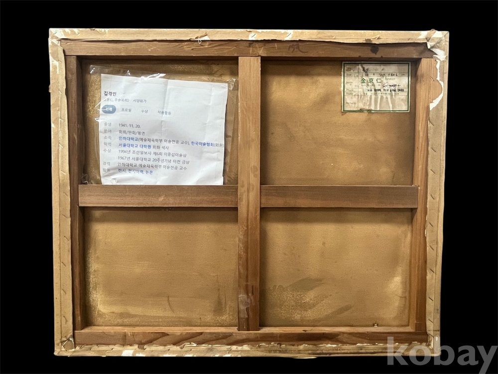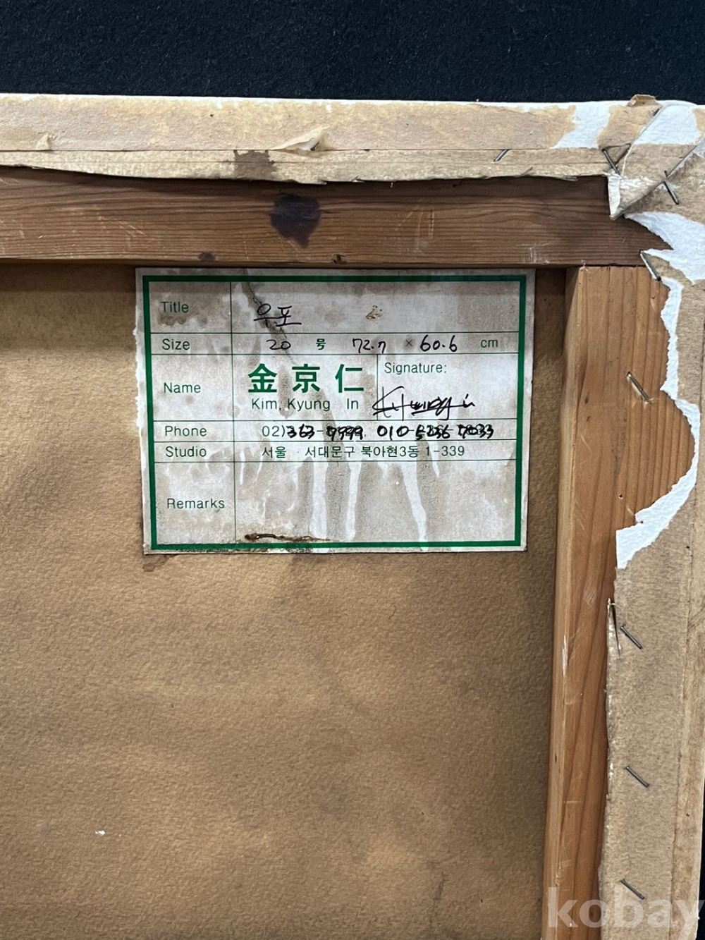 작가의 수결이 하단에 잘 쓰여 있으며. 캔버스의 뒷면에도 쓰여 있습니다.