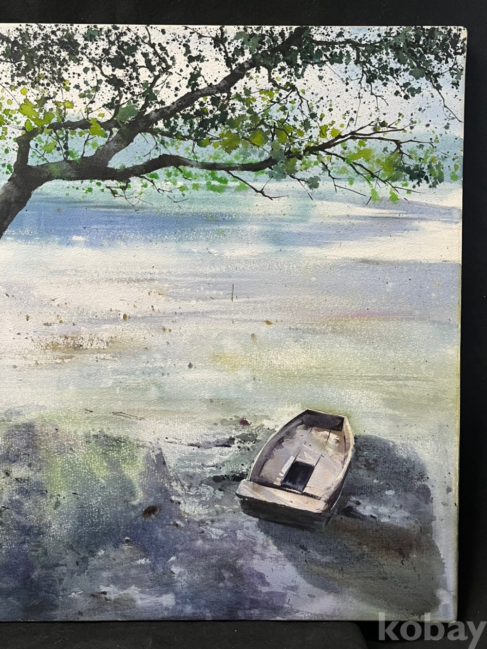 구도가 매우 안정적이며 차분한 채색기법으로 평화롭고 고요한 포구의 느낌을 잘 살렸습니다.