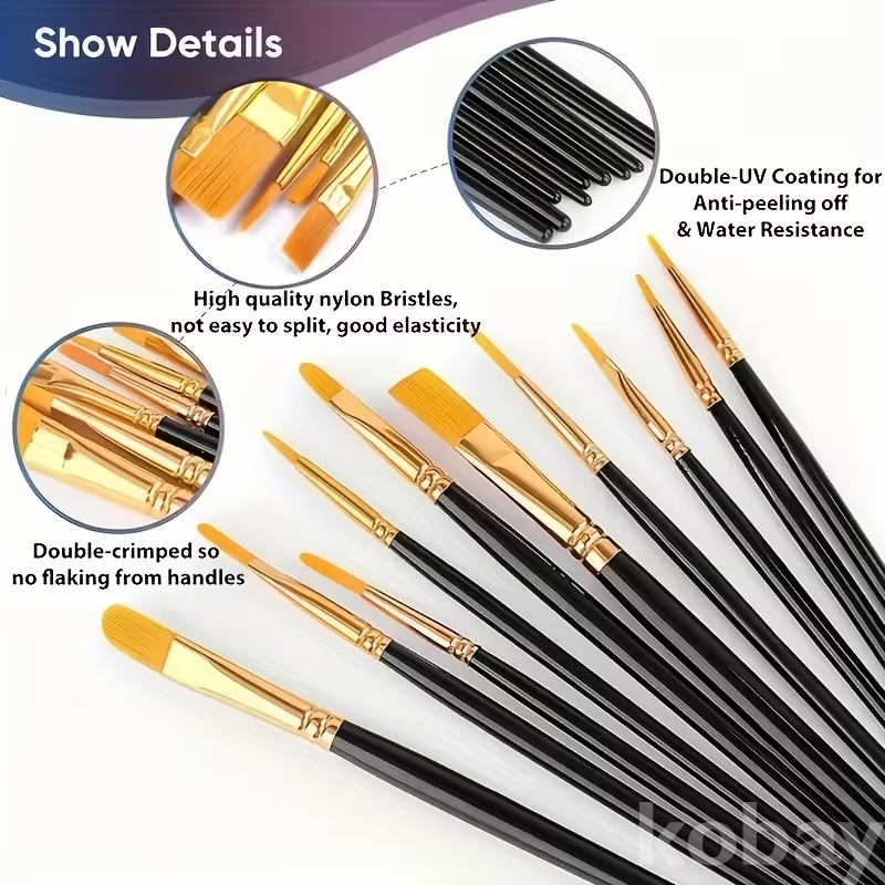 사진이미지와 같이 플라스틱 손잡이 아티스트 브러쉬, 내구성 있는 아크릴 나일론 브러쉬, 수채화, 유화,
