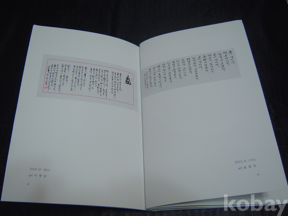 1. 경남서단 초대작가와 함께 여는 월하 김달진 시 서예전, 진해시 김달진문학관, 2006년, 27쪽, 상태 상, 사진 참조