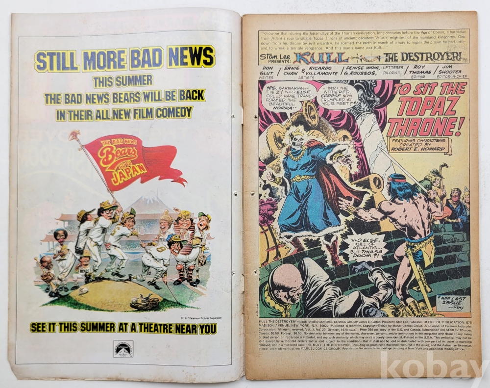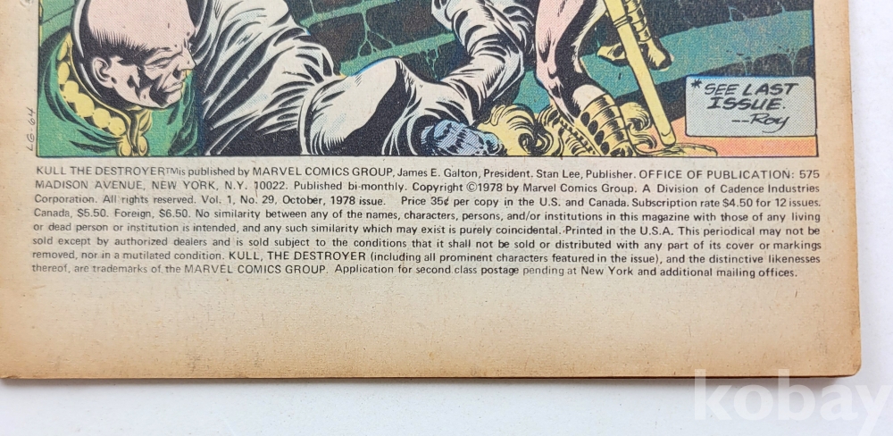 물 품 명 | KULL the DESTROYER / Vol.1 #29 Oct. 1978 / MARVEL COMICS GROUP / 미국 |