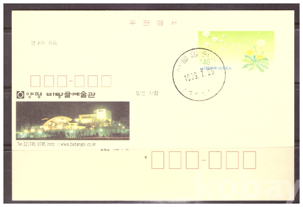 (광고엽서) 1999.7.26 지방판 LAPC345 양평바탕골예술관 (민들레 140원) (초일일부인)