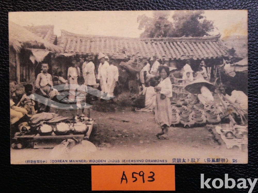 ▣근대한국엽서(진본): [조선풍속] 시장에서 나막신과 요강을 파는 상인들 모습/1매/귀함/사자료/일제강점기 사진엽서, 그림엽서, 회엽서. A593