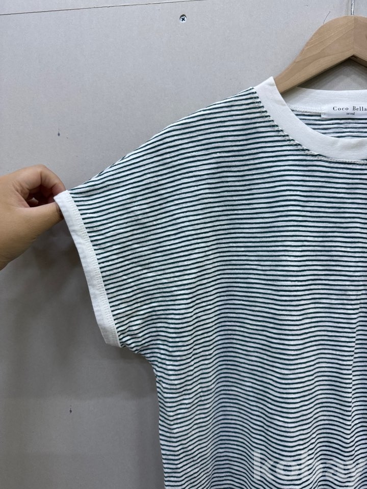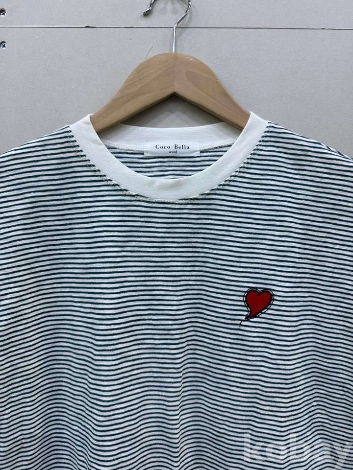 [천원옷장] #30 코코벨라 스트라이프 하트 자수 포인트 반팔 티셔츠 55