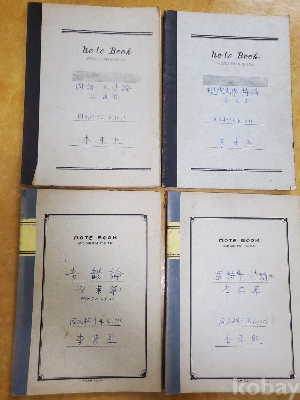 4. 42권의 노트 목록(수강한 강의 목록) : 강복수 교수의 국어 문법론(국문과 3년) / 김택규 교수의 현대문학 특강(국문과 3년) // 이숭녕 교수의 음운론(1961년, 국문과 4년) / 이숭녕 교수의 국어학 특강(국문과 4년) / 조규설 교수의 국어학 개론(국문과 4년) / 강복수 교수의 국어학 강독(국문과 4년) // 신동집 교수의 문학개론 / 심재완 교수의 국문학 개론 / 이은상 교수의 한국사상사 / 김사엽 교수의 국문학사 / 최해종 교수의 한문학 강독 / 김형규 저 국어사 / 이기문 저 국어사 개설 / 이자현 교수의 자연과학 / 강복수 교수의 국어학 개설 / 강복수 교수의 국어사 / 김형규 교수의 국어사 / 강복수 교수의 국어학 강독 / 강복수교수의 S???? / 유일지 교수의 국사 // 국문학강독(두시언해) / 국문학강독(박통사언해) / 국문학강독(청구영언) / 세계문화사 / 국어학사 / 중국문학사 신문학 / 철학개론 / 영어 / 중국어 / 교육철학 / 교육공무원특별교육(1962년) / 국어방법론 / 가사 문학 /// 기타 : 국문학사(영남고등학교 3학년) / 종합기록 / 메모 국어 / 협의비망록(2-2) / 국문법(영남고등학교) / 부조기(무술년-1958년) / 제목 없는 것 4권 //