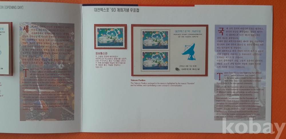 대전엑스포 '93개최 기념 우표첩 입니다.