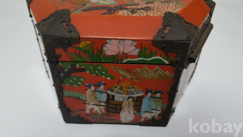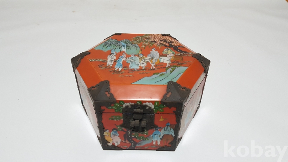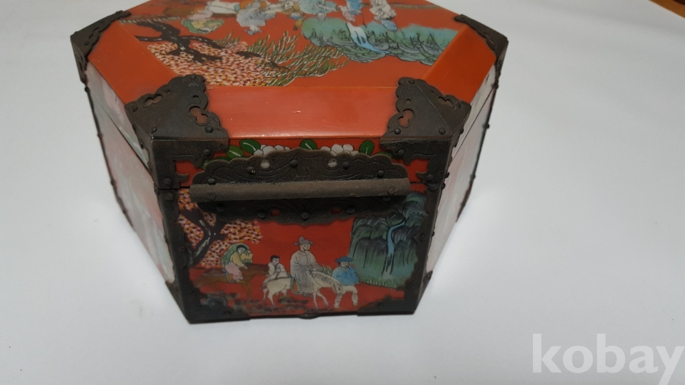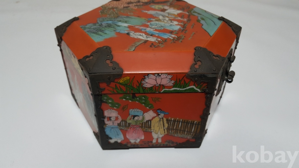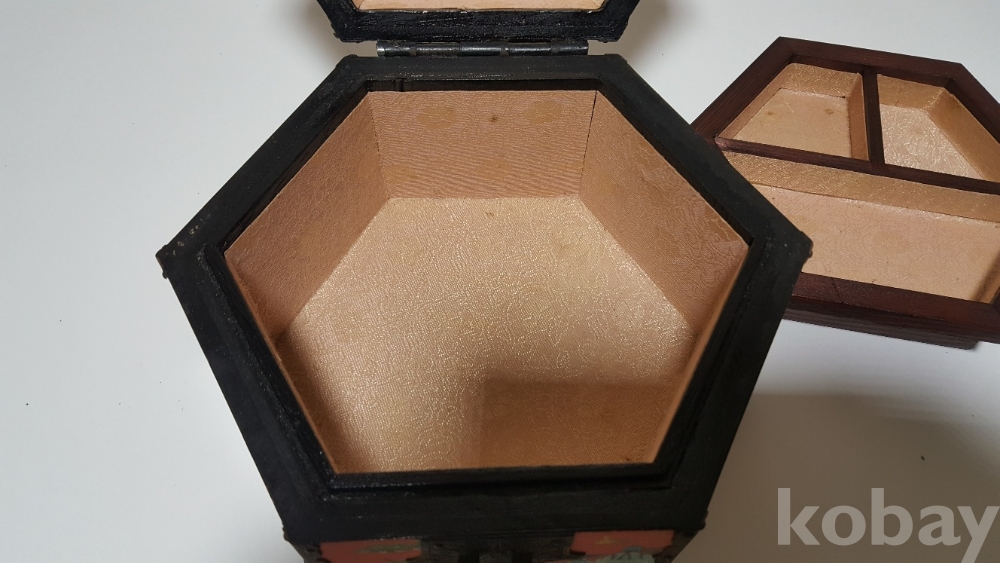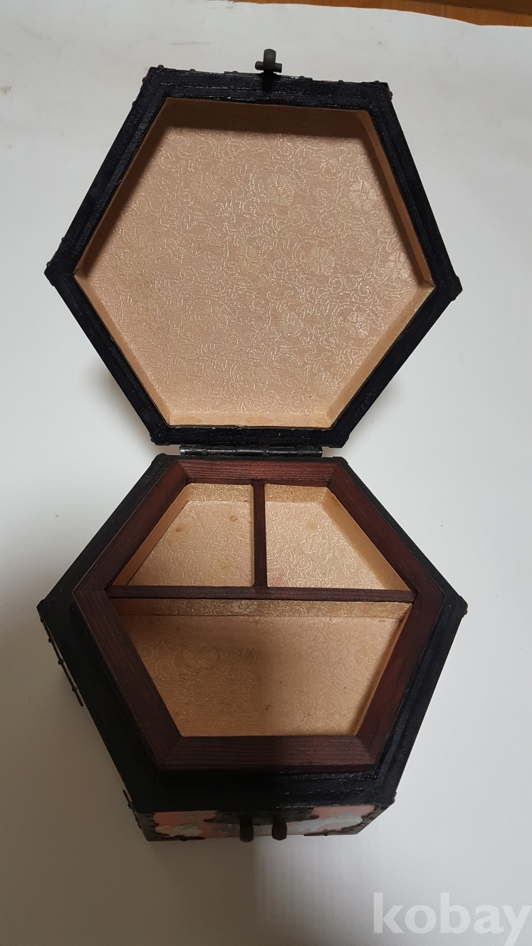 한국의 전통 민예 공예품/한국적인 전통 문양이 있는 육각 보석함/고급 물품입니다.유수리 없이 깔끔한 상태 유지합니다.
