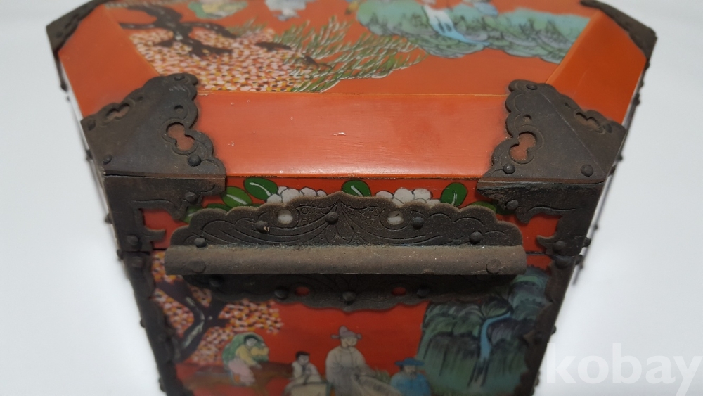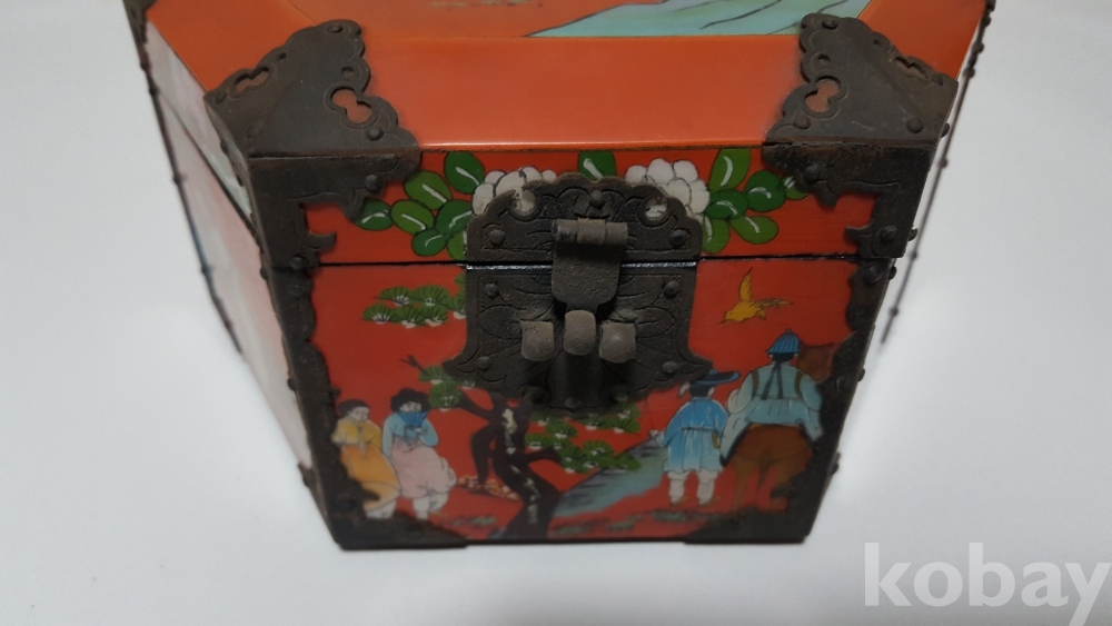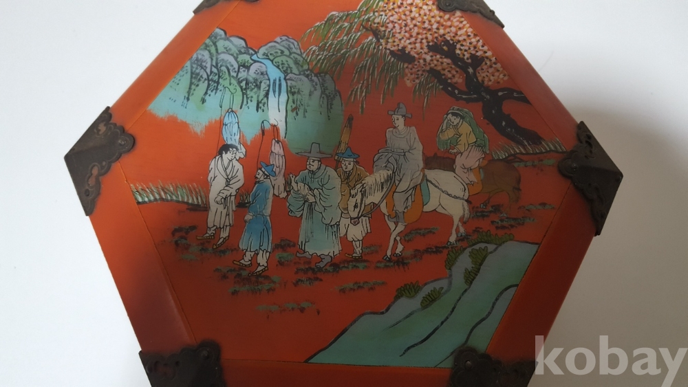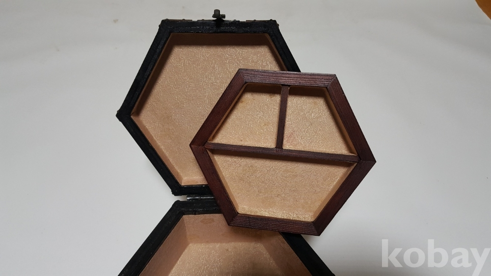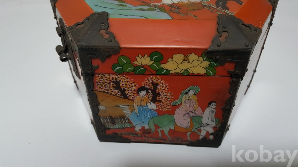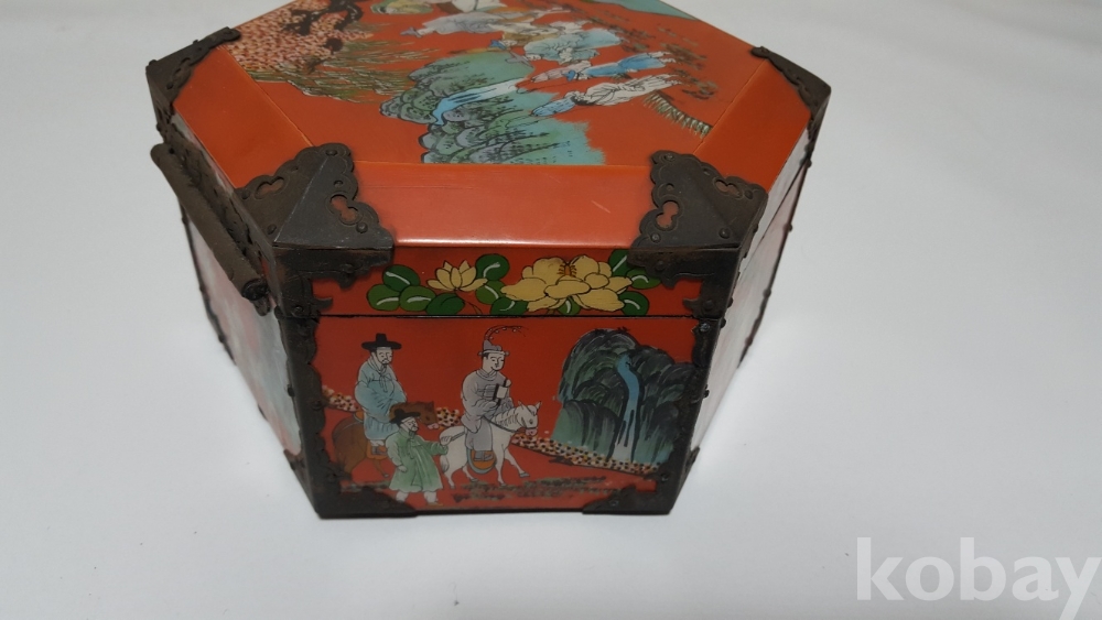 한국의 전통 민예 공예품/한국적인 전통 문양이 있는 육각 보석함/고급 물품입니다.유수리 없이 깔끔한 상태 유지합니다.
