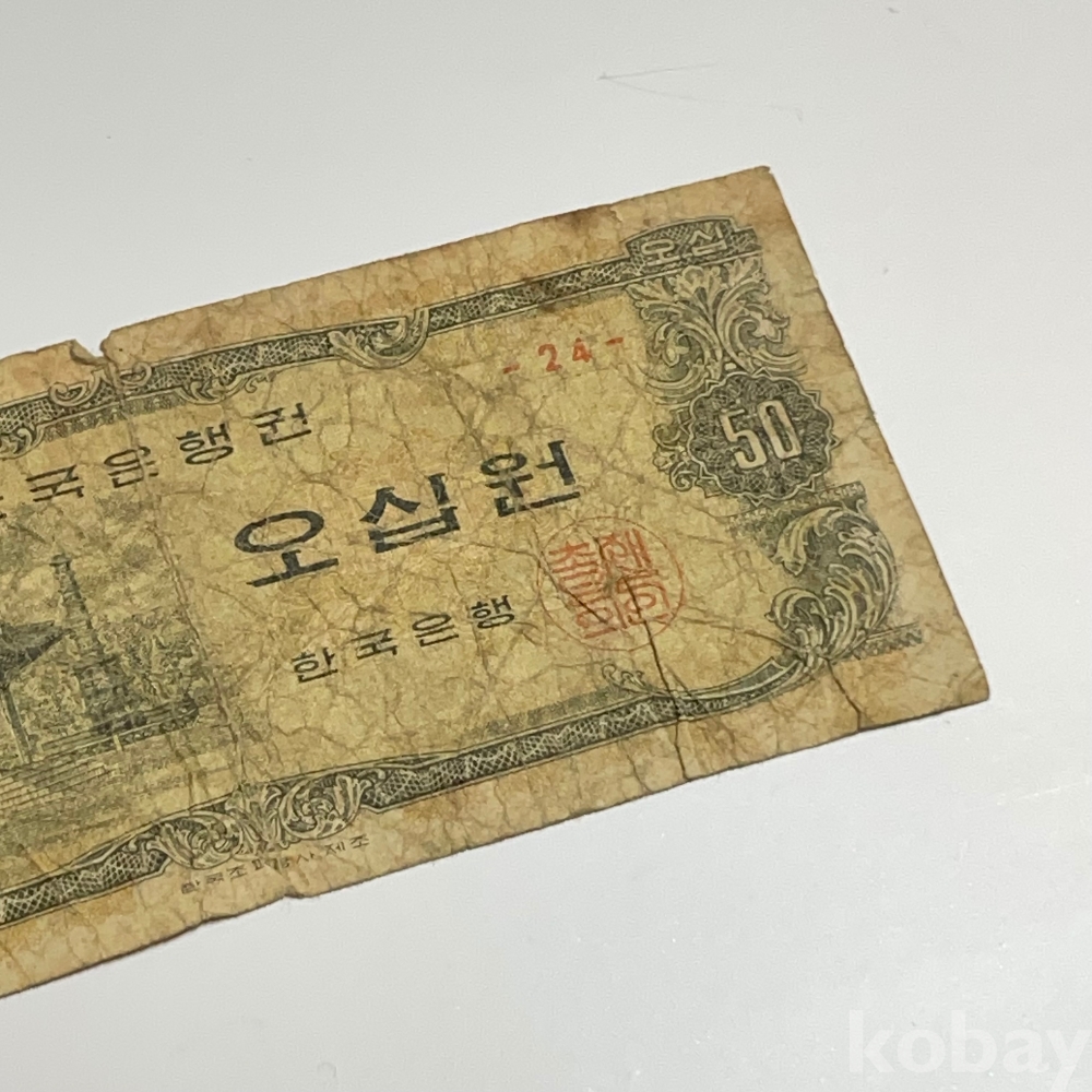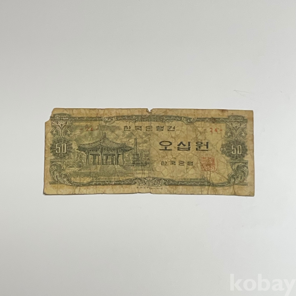한국은행 나 50원 오십원 팔각정 판번호 24