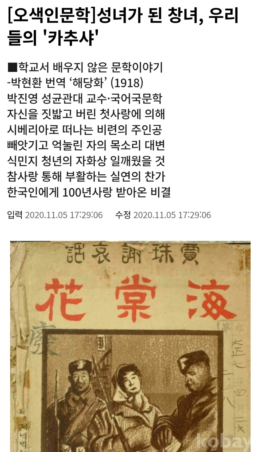 박현환은 폭풍 전야인 1918년 ‘해당화’라는 제목으로 카추샤 이야기를 번역했다. 해당화가 뜻하는 것은 두말할 나위도 없이 카추샤다.