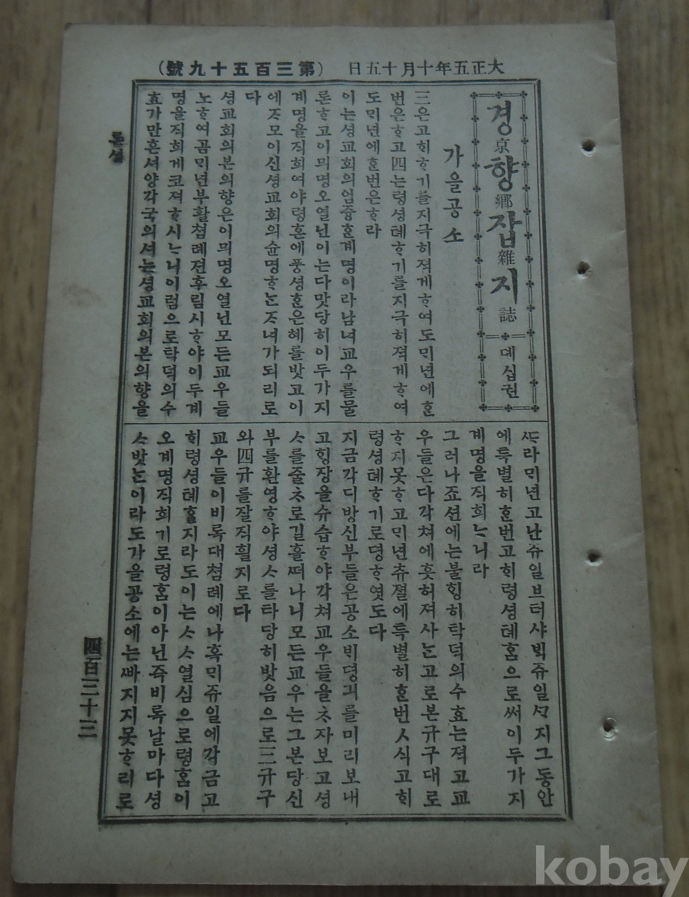 경향잡지는 당시 한 달에 두 번 15일. 30일 반월간지로 발행.