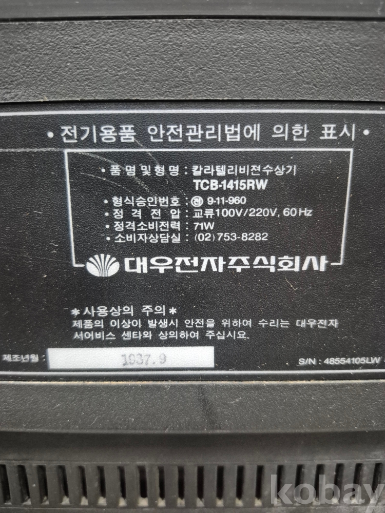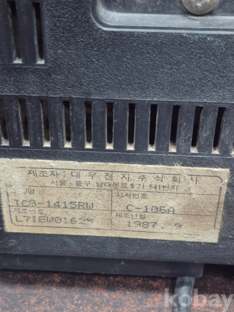 1987년 대우전자 칼라텔레비젼 전원정상 화면은 조금밖에 안나옴 우드패턴 모델TCB 1415RW 46*35*32