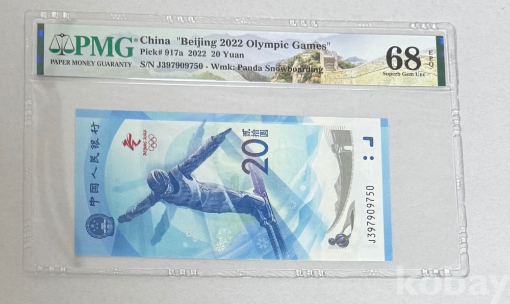 중국 2022 베이징 올림픽 기념 20위안 “스노우보딩” PMG 68 EPQ