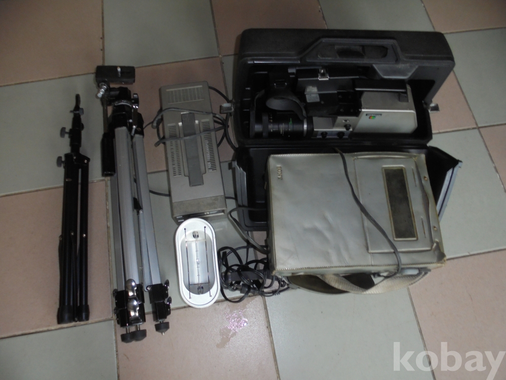 전문비디오 작가가 사용하다 나이가많아 나온 큰쇼니 비디오 카메라와 후라시 밧테리와 충전기 삼각다리 되풀기하는조절기등