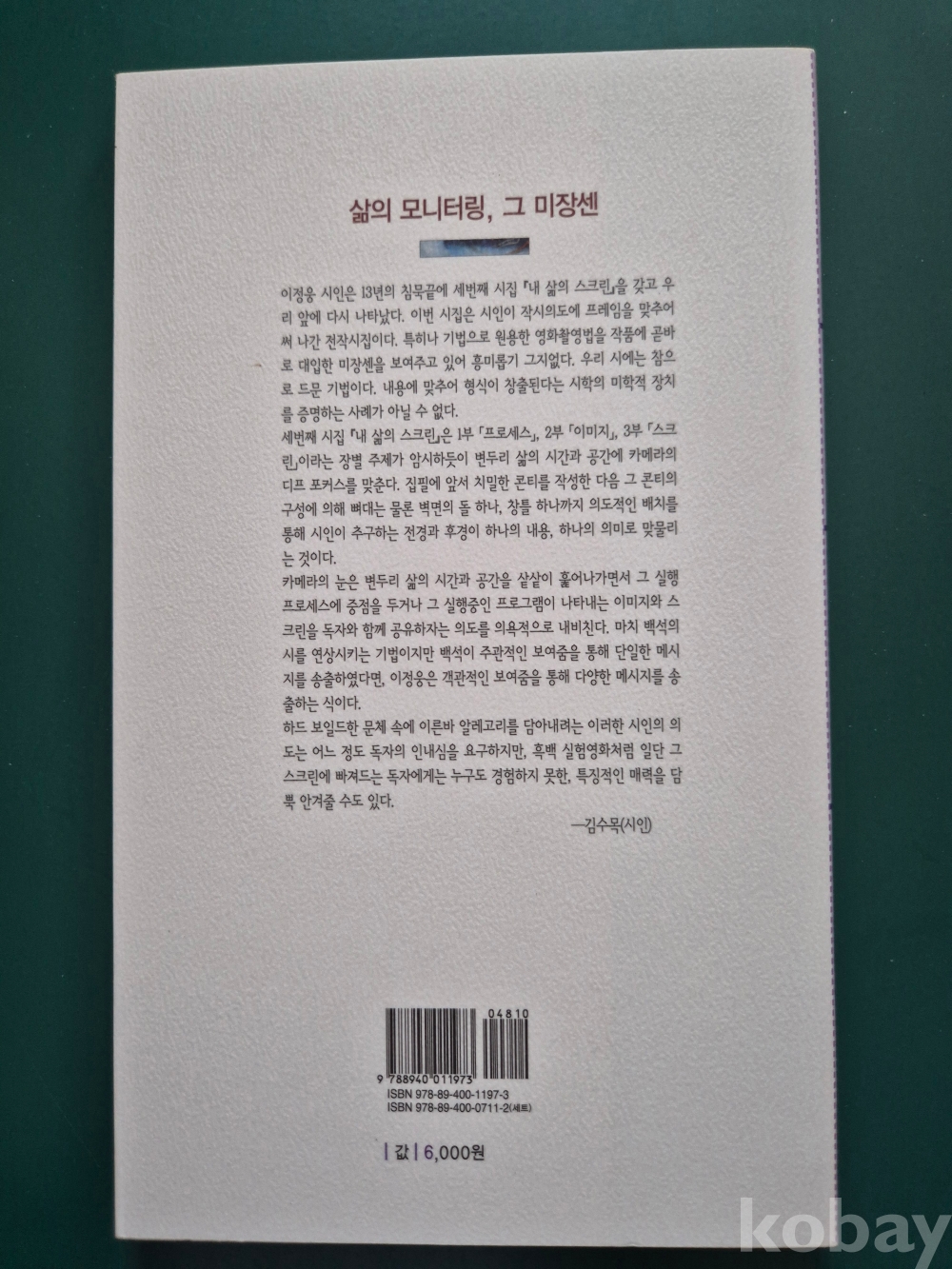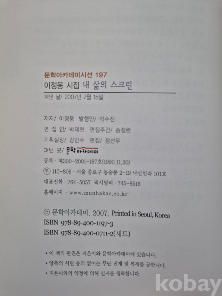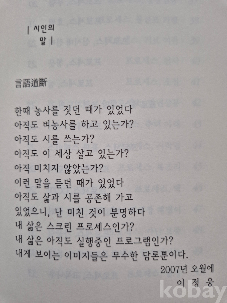 2007년 발간한 제3시집 『내 삶의 스크린』