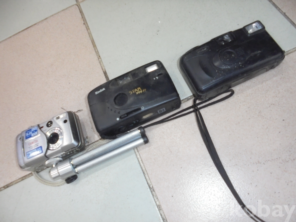 편하게 휴대하고 사용하던 다리달린 디카 올림프스 카메라 1대와 코닥 필림카메라 2대 전부 작동여부알수없으나 카메라 총3대