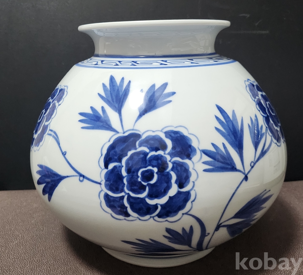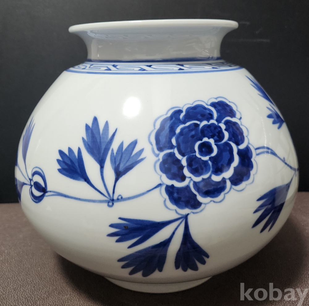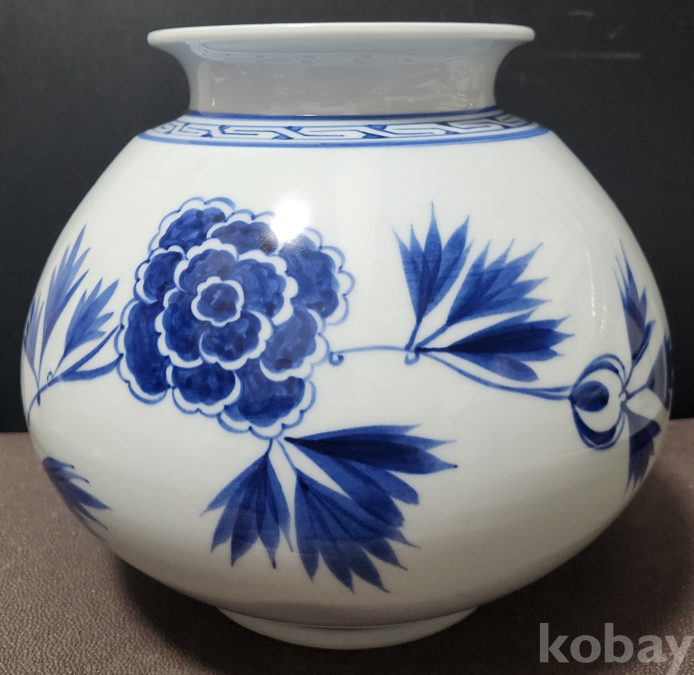 < 도예 명장 > 창목 昶沐 오석경 吳碩京 백자청화모란문호 白磁靑華牡丹紋壺