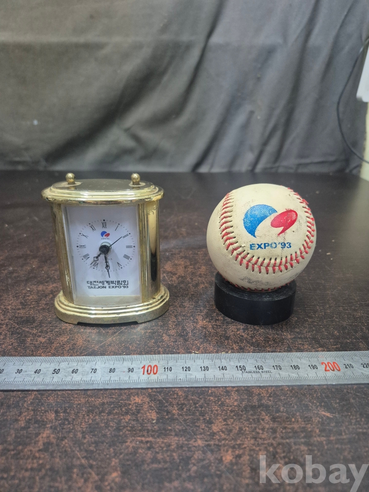 1993년 대전엑스포 기념 탁상시계 정상작동 대전 엑스포 기념 야구공 1점 2점 일괄 8*5.5*10