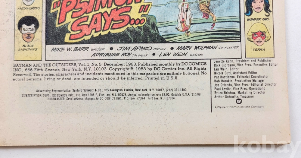 물 품 명 | BATMAN and the OUTSIDERS / Vol.1 #5 Dec. 1983 / DC COMICS / 미국 |