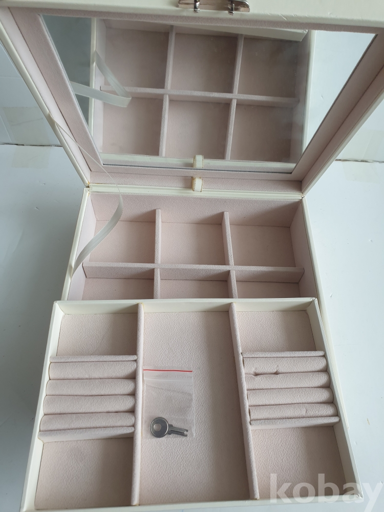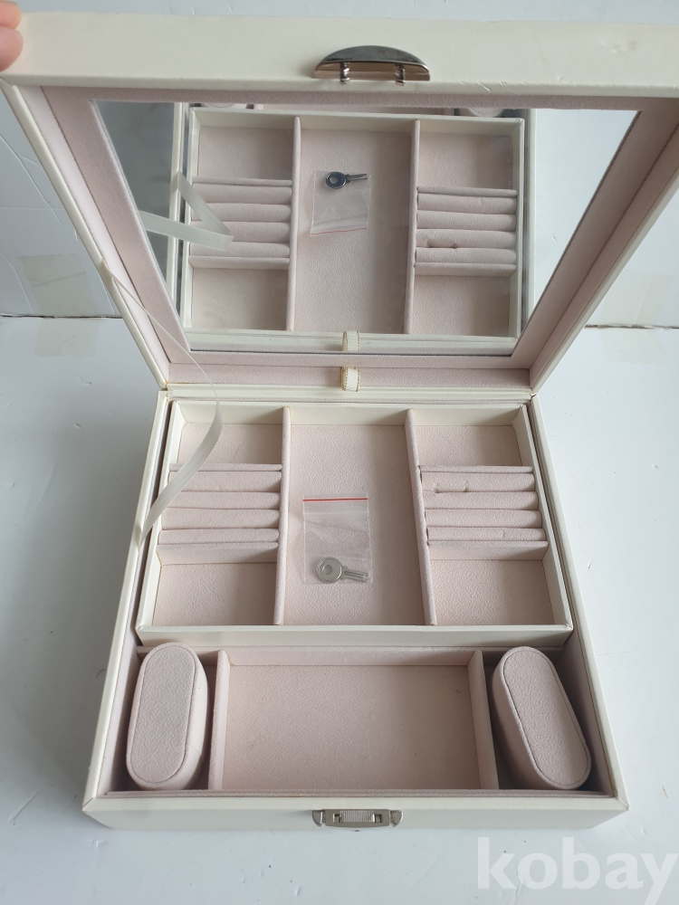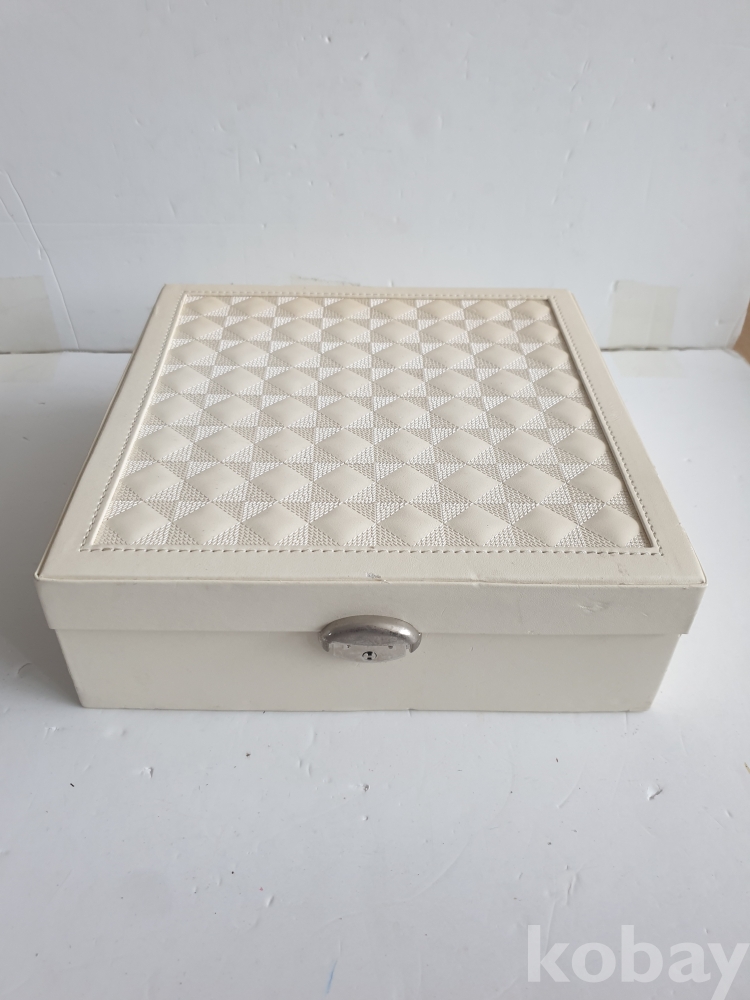 [천원경매] 10-360 2단 주얼리 박스(인조가죽 소재, 스크래치 있음, 25*25*8.5cm)