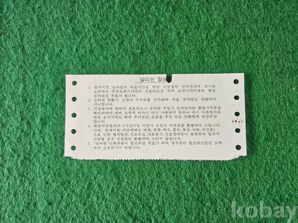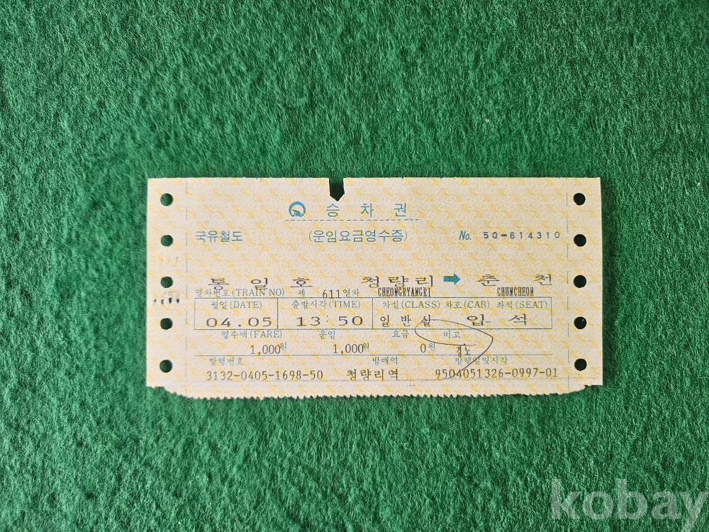 - 열차 승차권 통일호 " 청량리 - 춘천 "