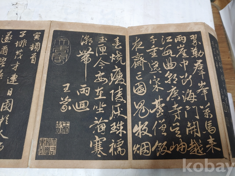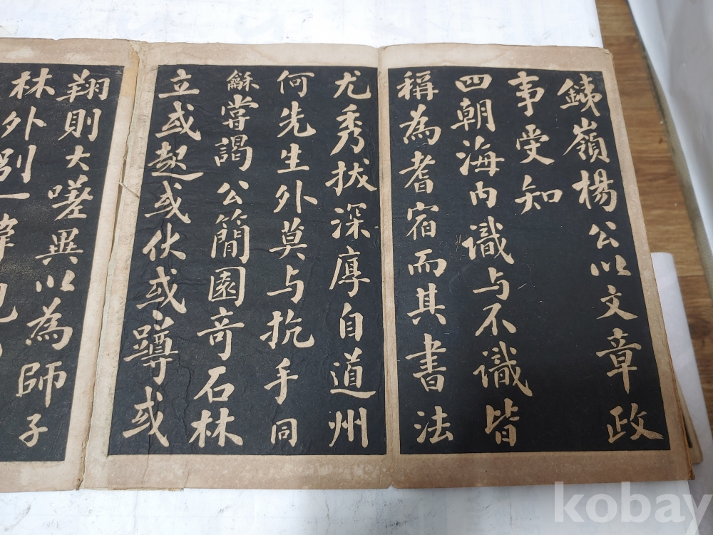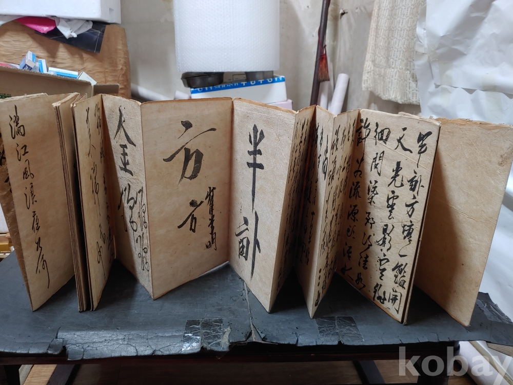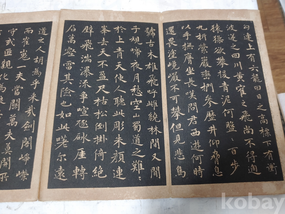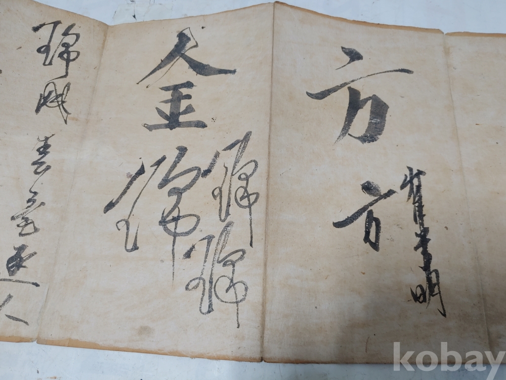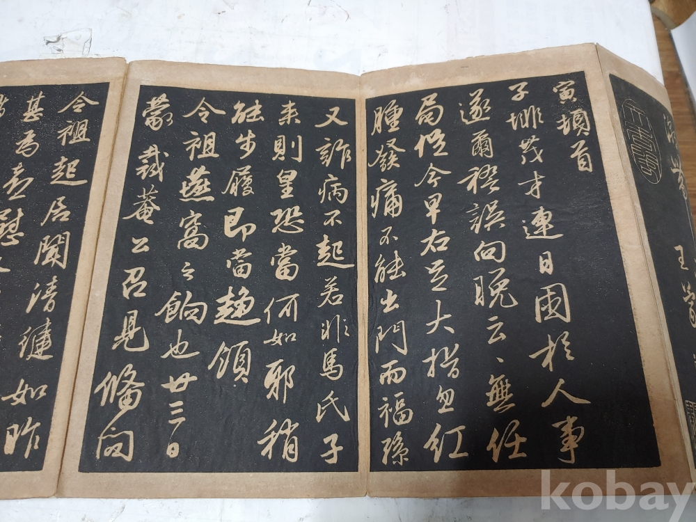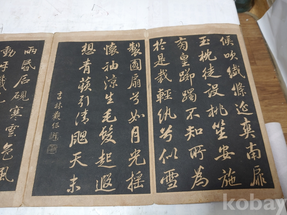 두꺼운 한지에 32면의 서첩이며 뒷면에는 필사체의 글씨가 있음