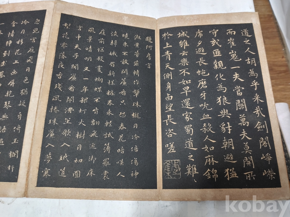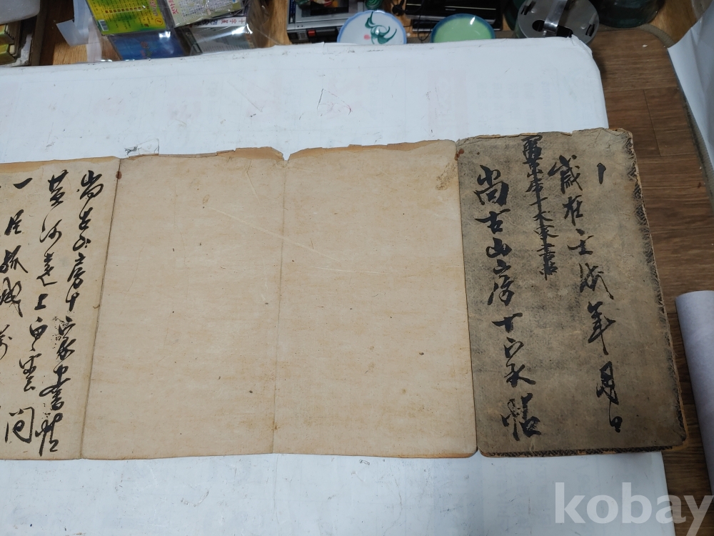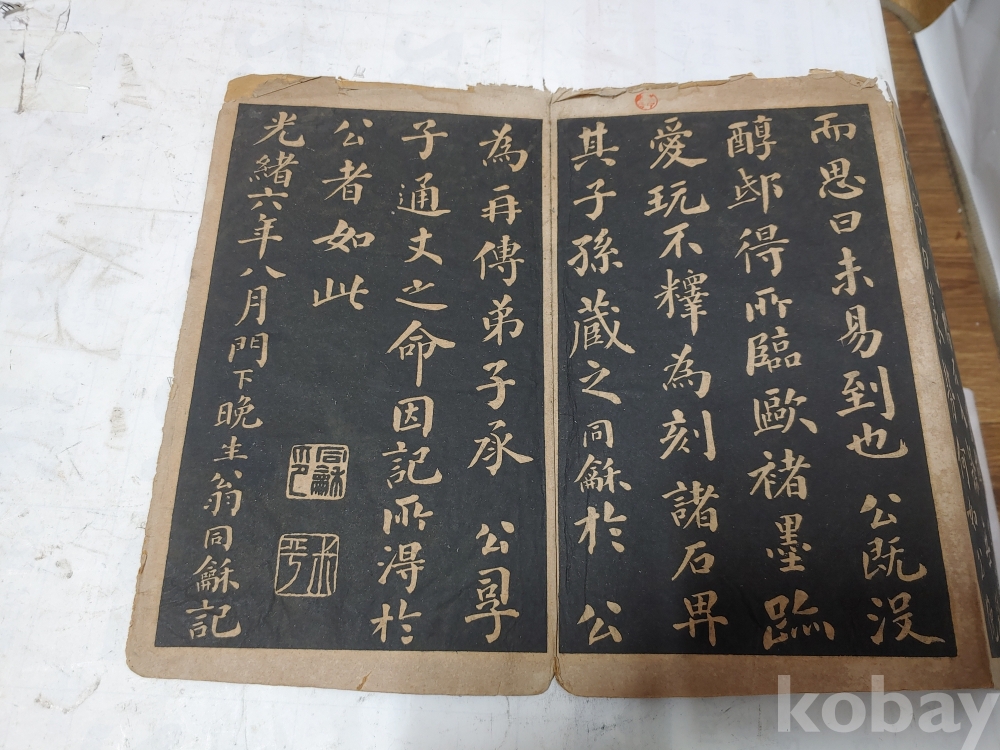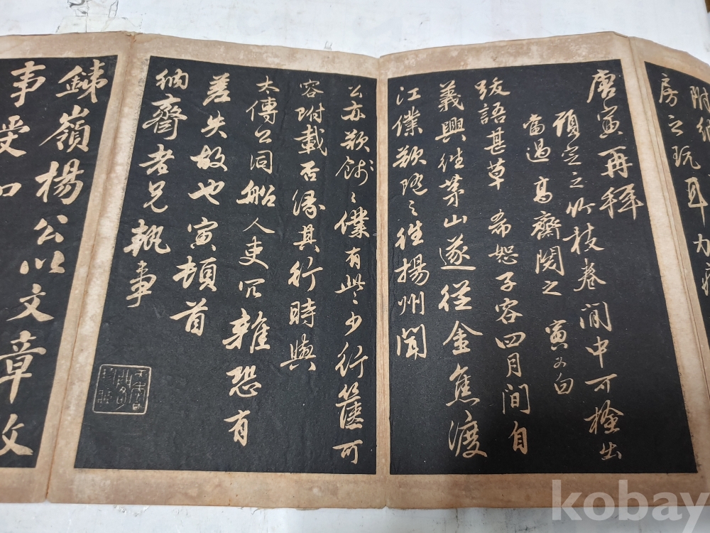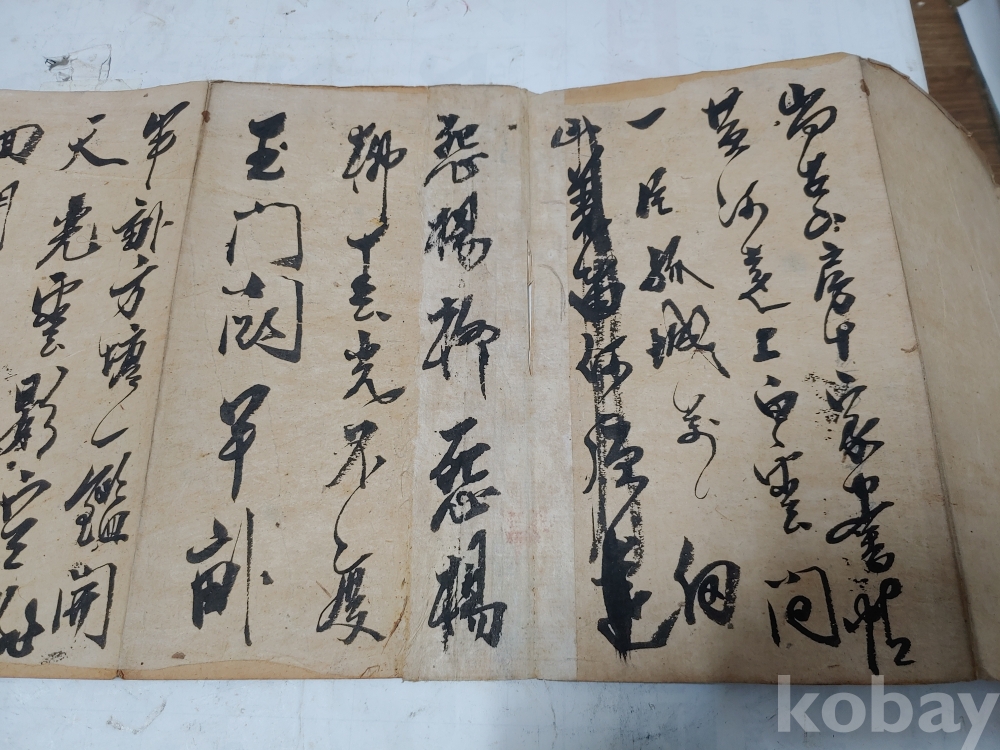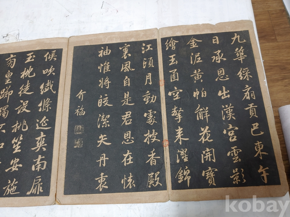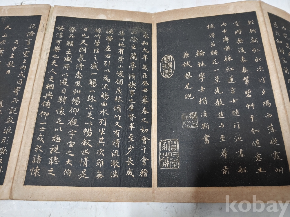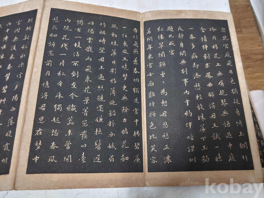 두꺼운 한지에 32면의 서첩이며 뒷면에는 필사체의 글씨가 있음