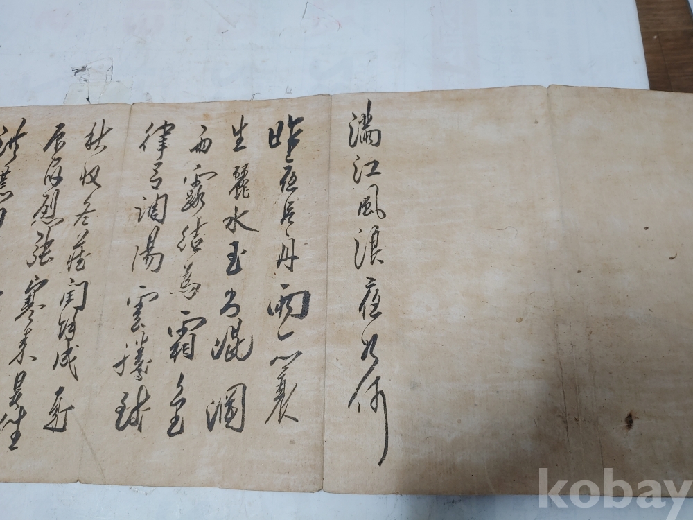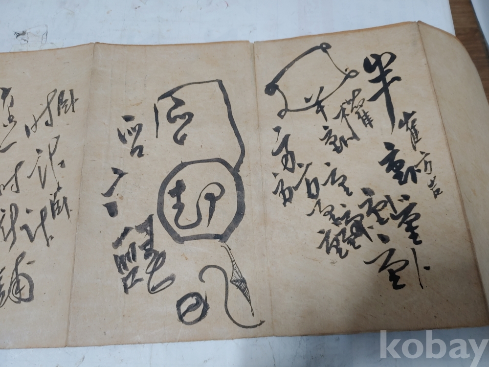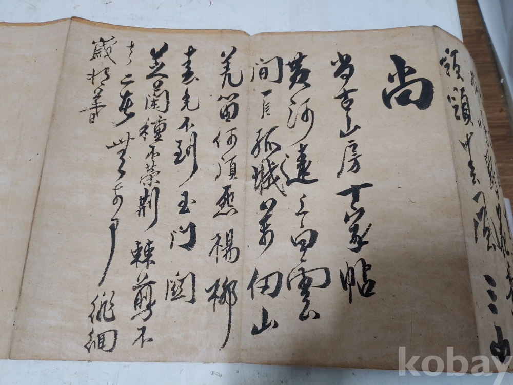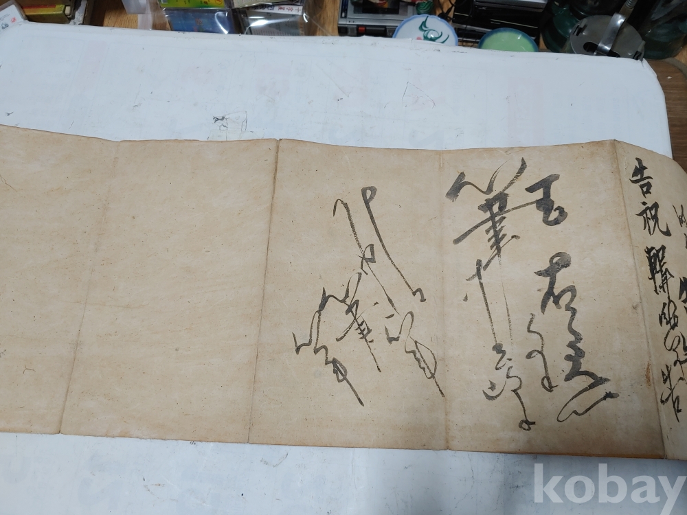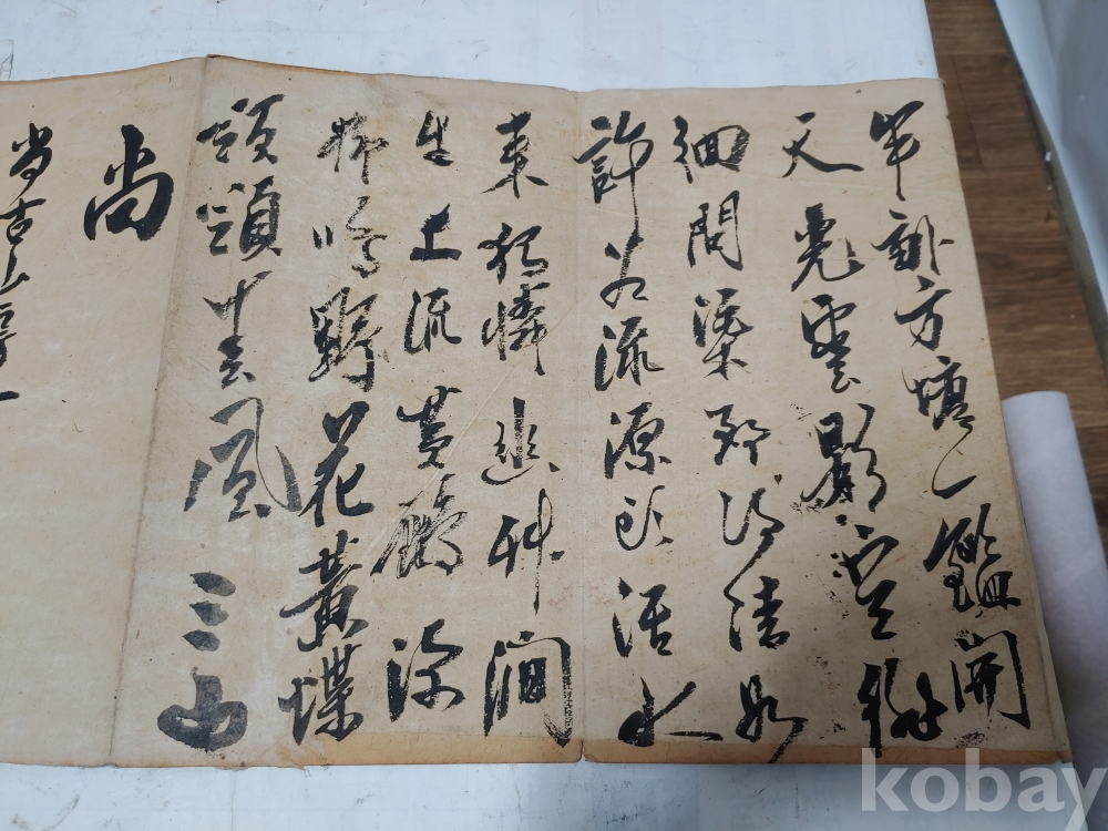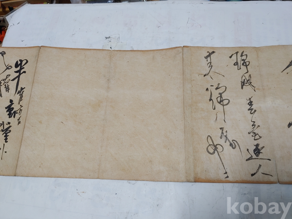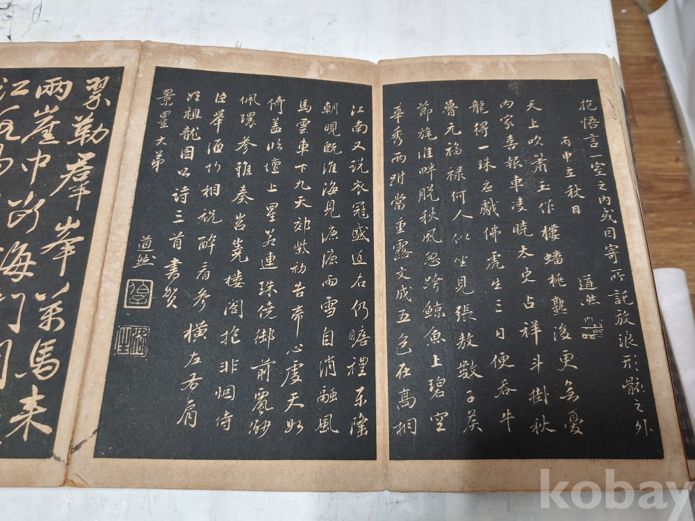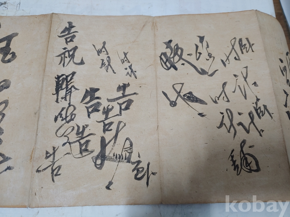 두꺼운 한지에 32면의 서첩이며 뒷면에는 필사체의 글씨가 있음