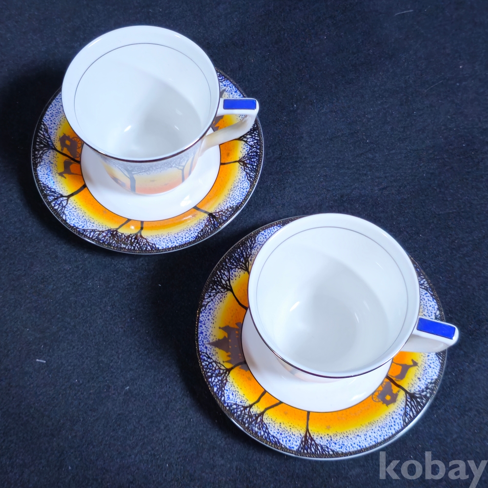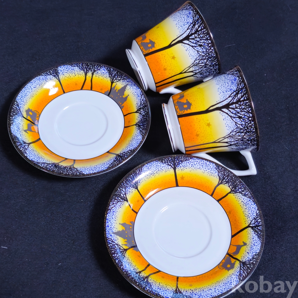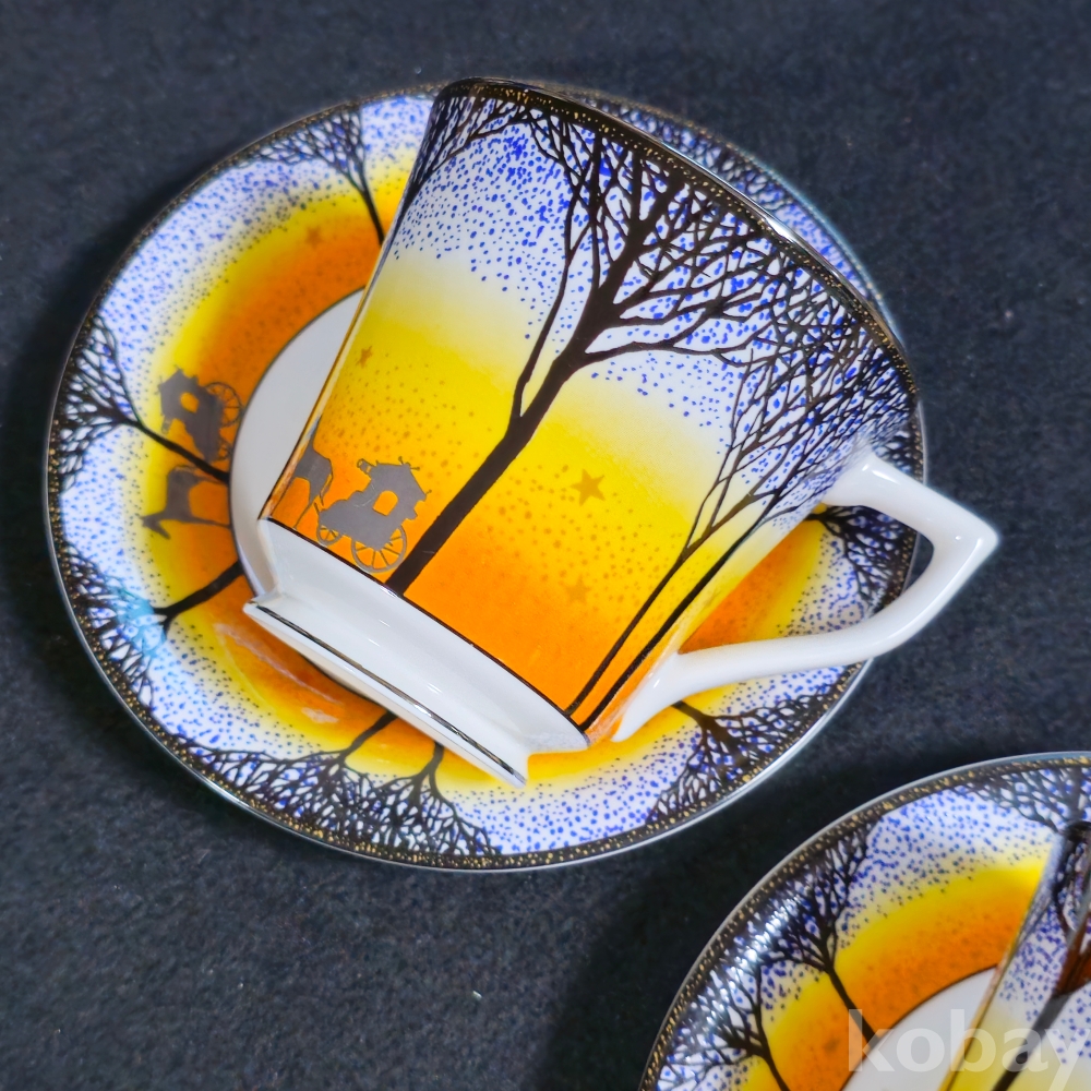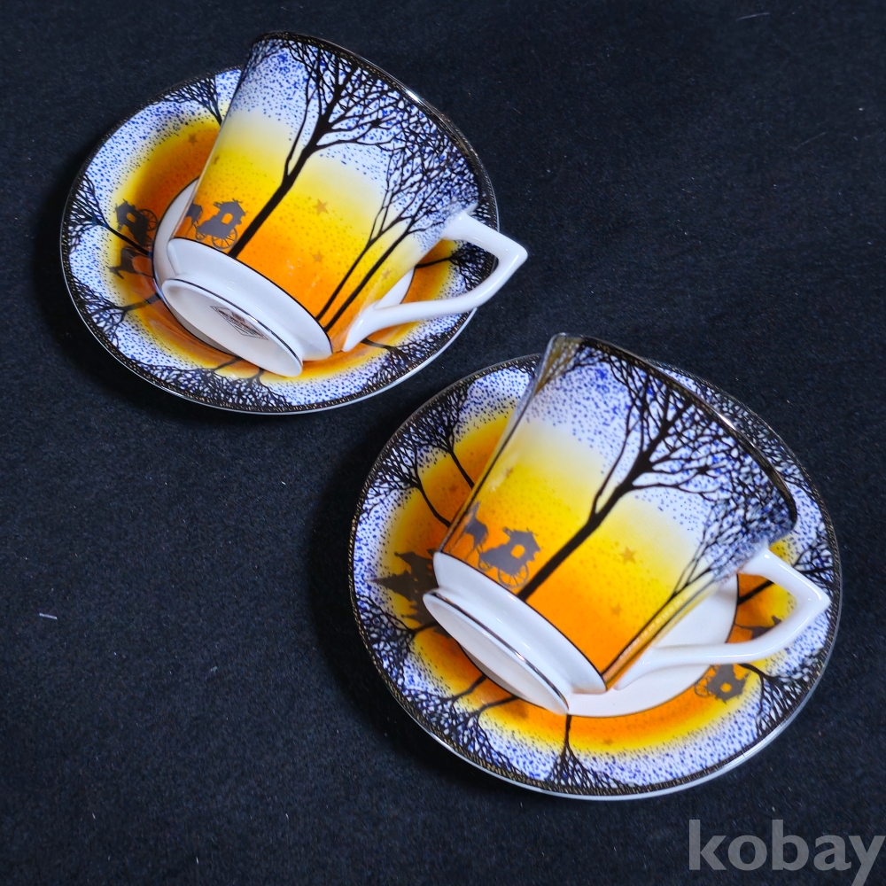 (((도자기커피잔))) 오래전 멋진 풍경모습 커플 도자기 커피잔/잔받침 (행남사)