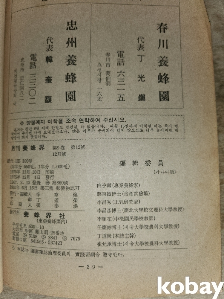 75년에 발행된 양봉계(養蜂界) 양봉계사 발행