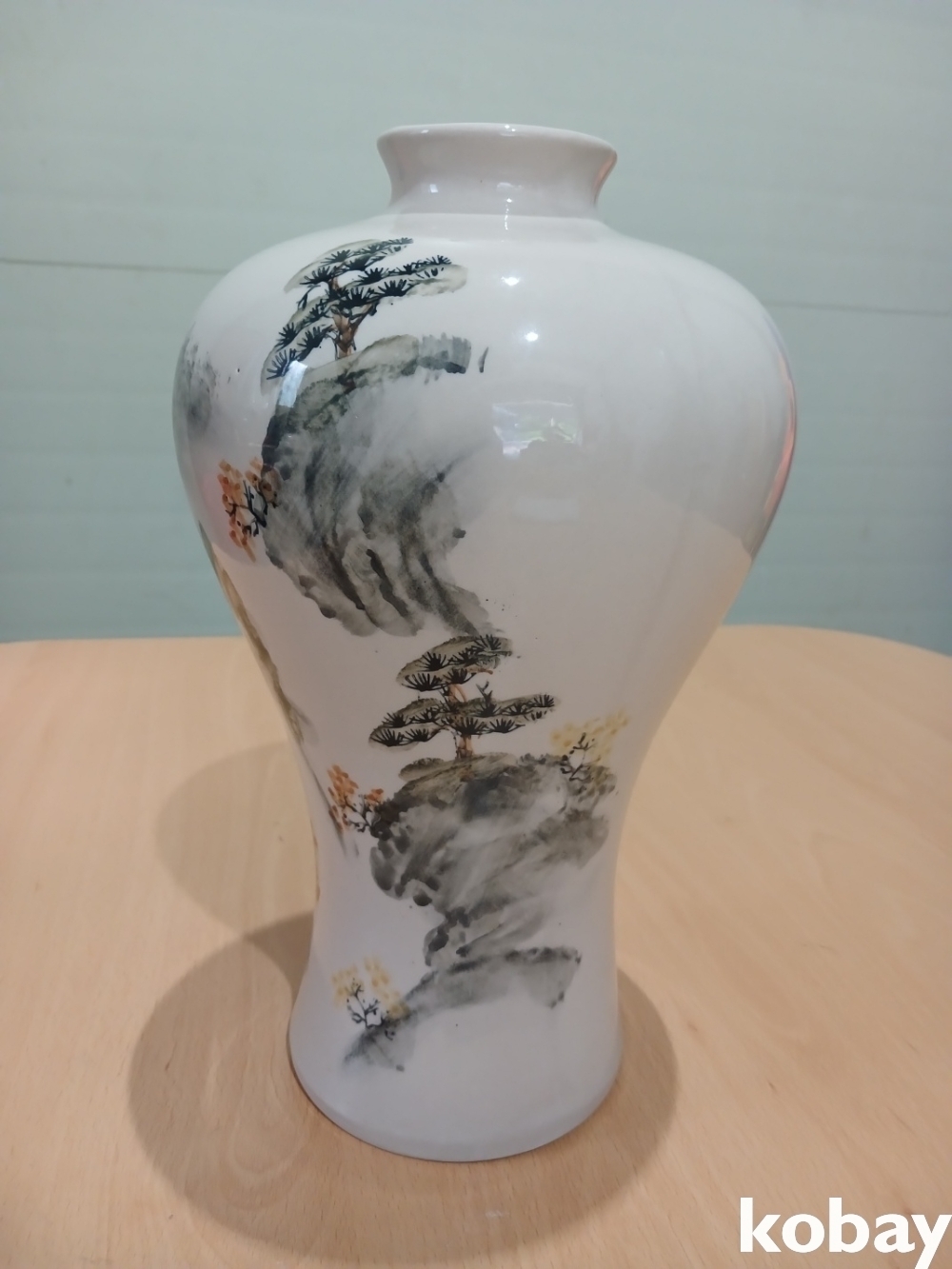 산수 풍경을 아름답게 표현한 매병 도자기 입니다.