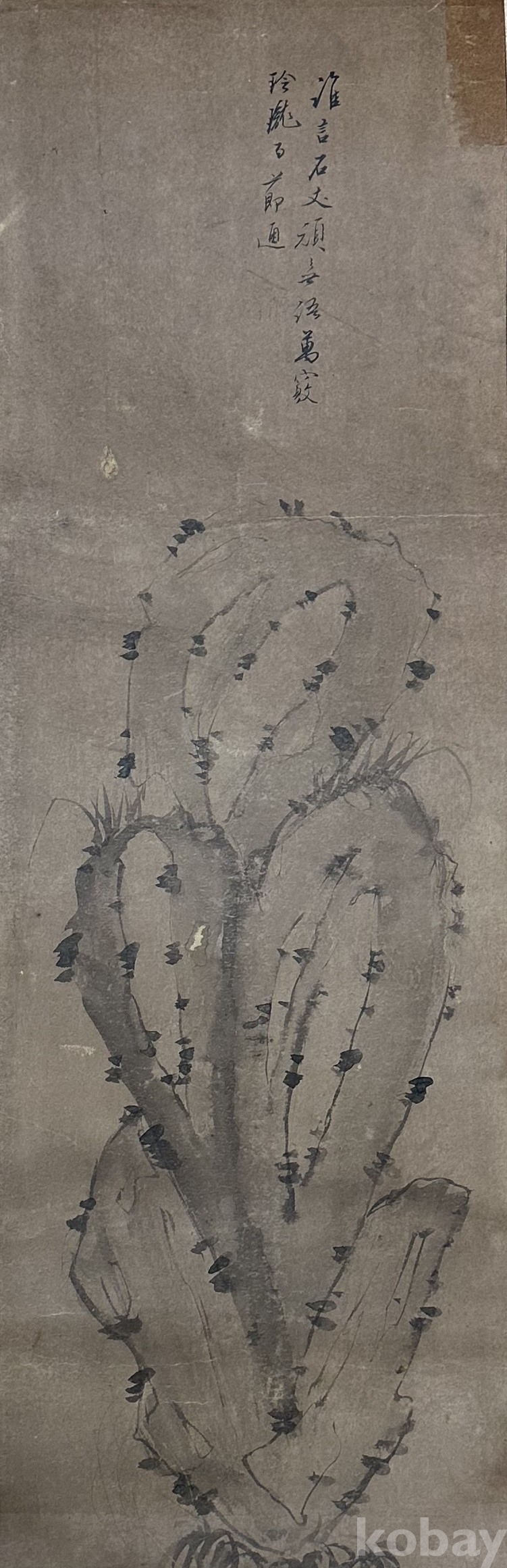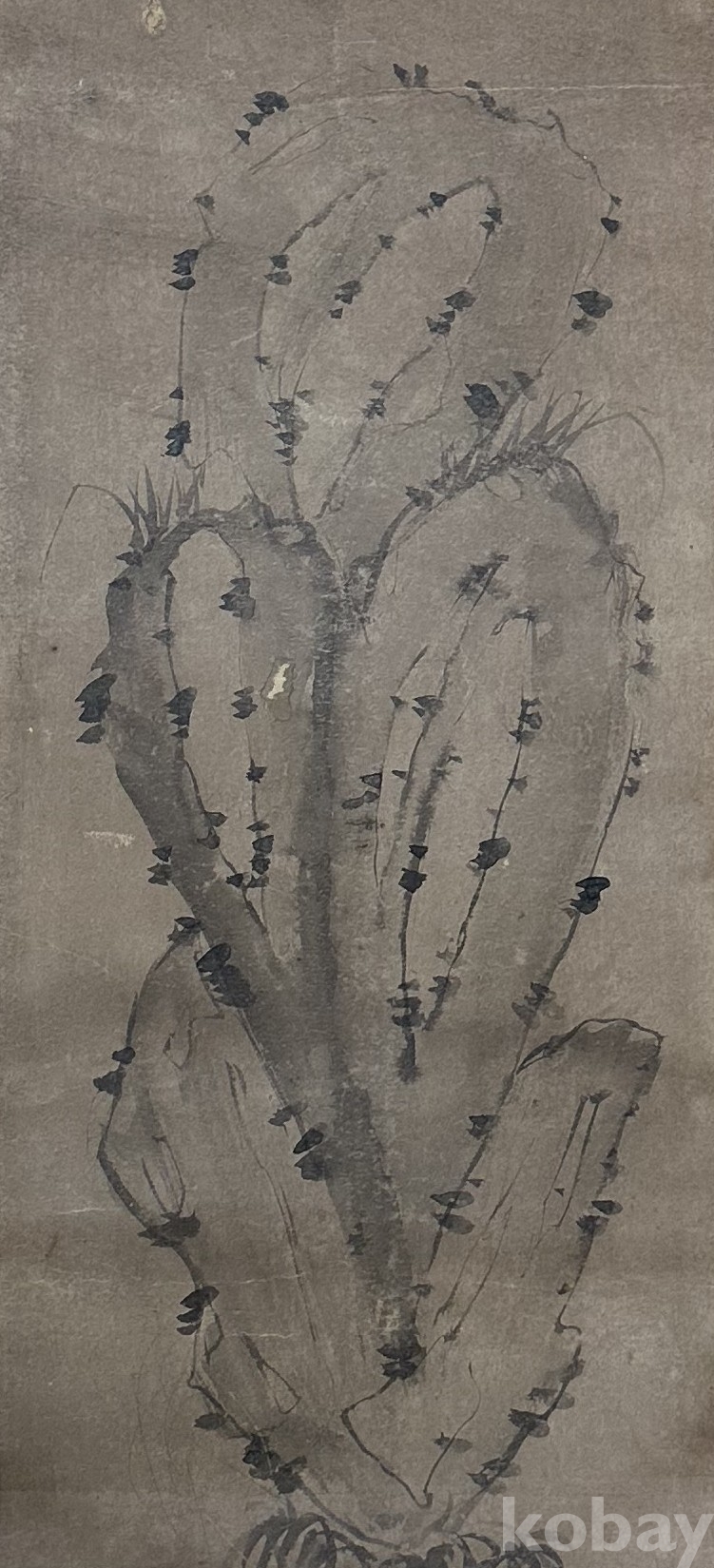 이 작품은 선인장 형태의 식물을 묵법으로 표현한 수묵화입니다. 전통 문인화의 운필을 기반으로 하면서도, 독특한 소재 선택을 통해 현대적 감각을 보여줍니다.