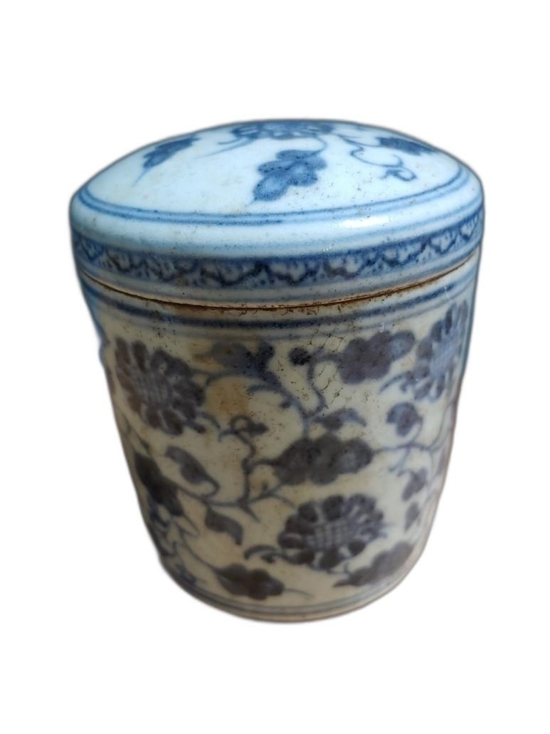 청화의 색감이 좋은 합 도자기 입니다.