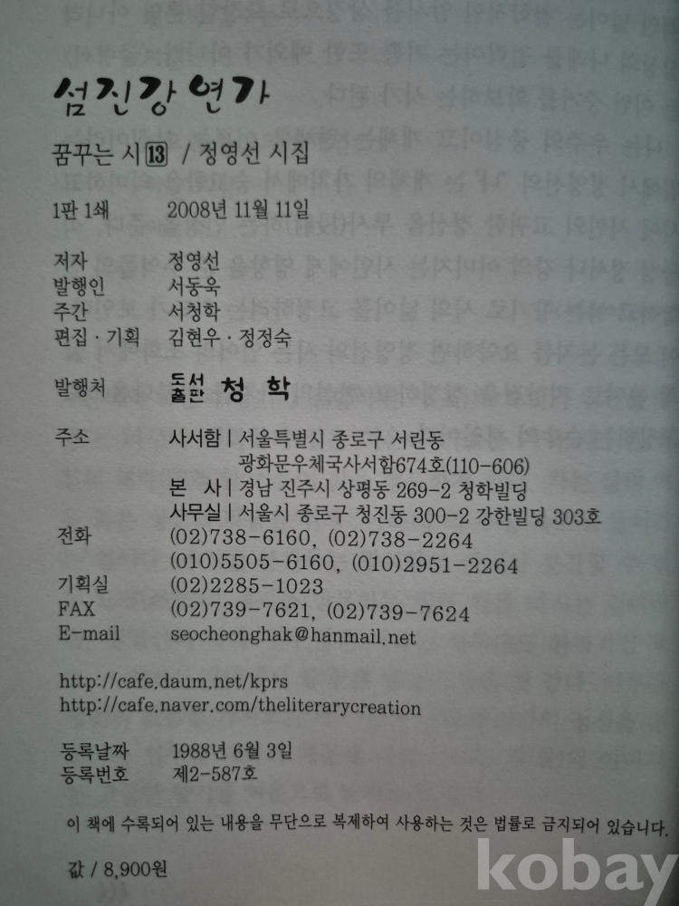 정영선(경상남도 하동) 처녀시집.