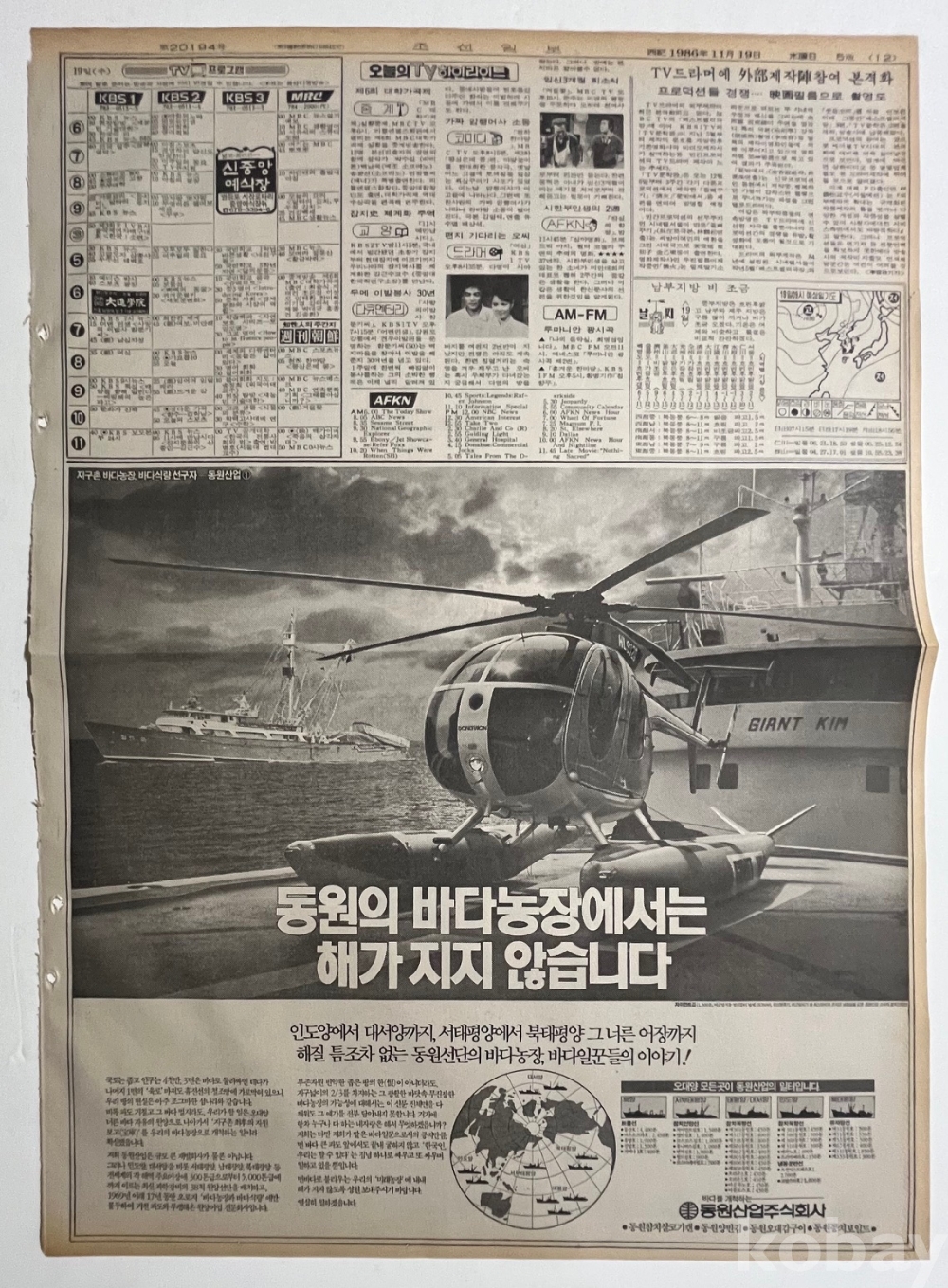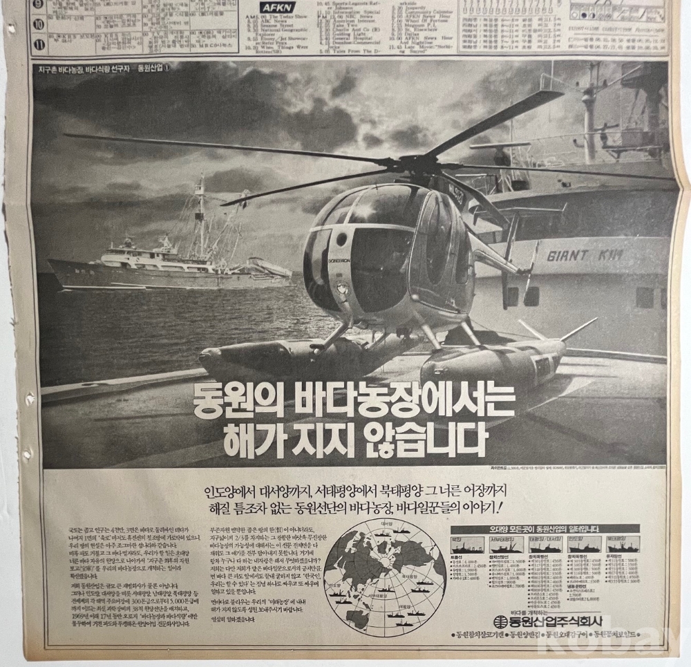 동원산업 광고가 실린 조선일보 낱장입니다.