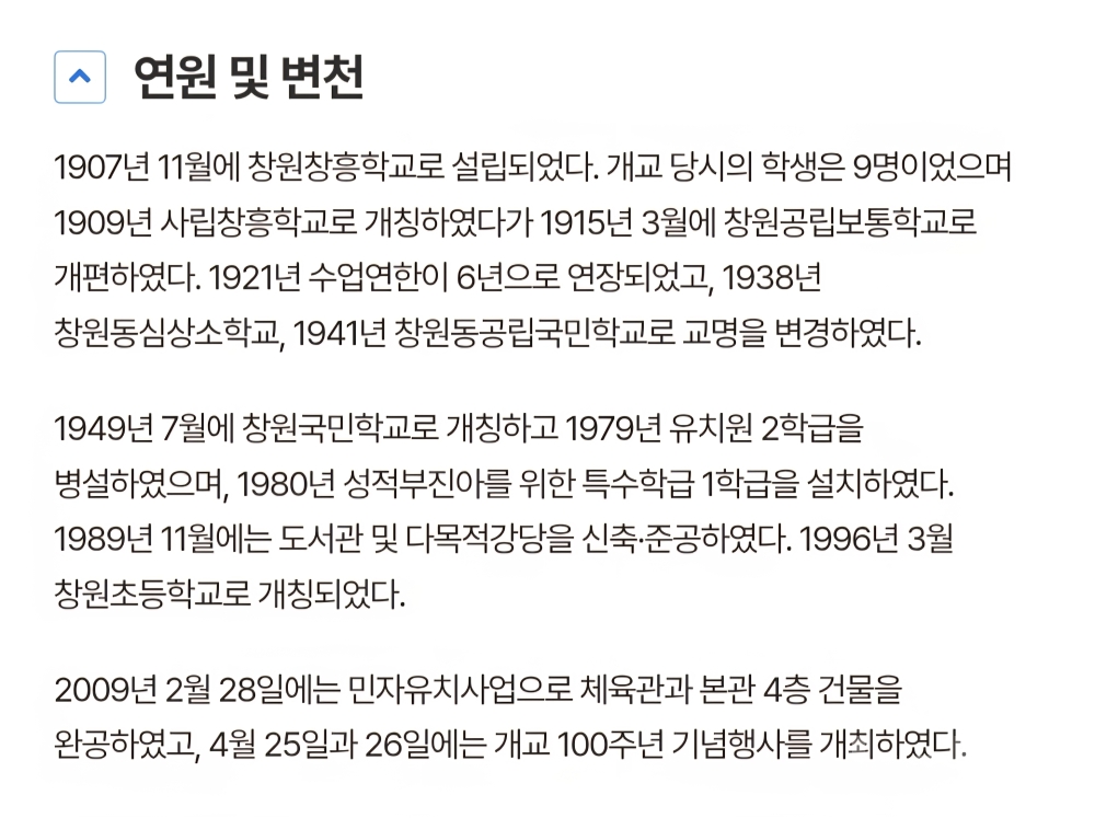 1907년설립, 1941년 창원동공립국민학교로 개칭, 지금의 창원초등학교.