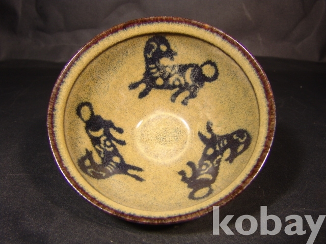 강아지 세마리가 시문된 길주요완으로