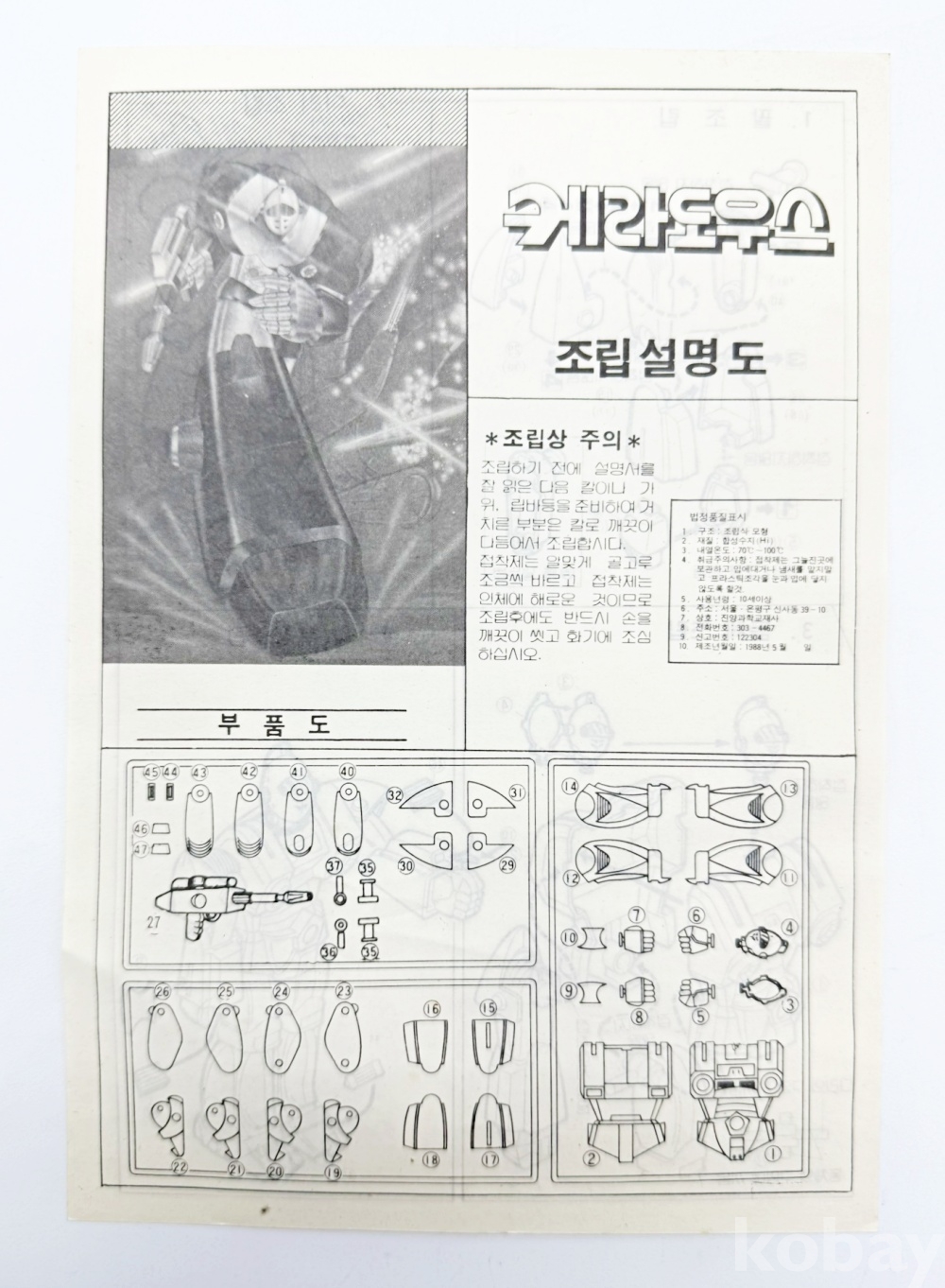 상품설명 | 진양과학교재사에서 발매한 사천왕 로보트 '케라도우스' 1/144 스케일이다. | ||
