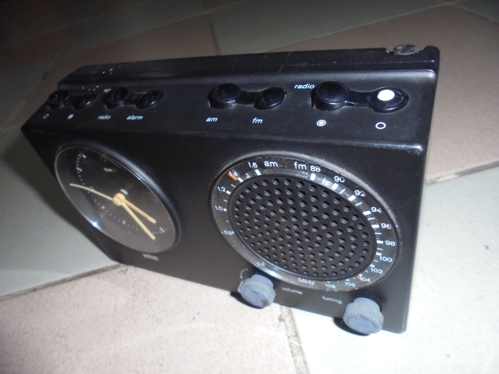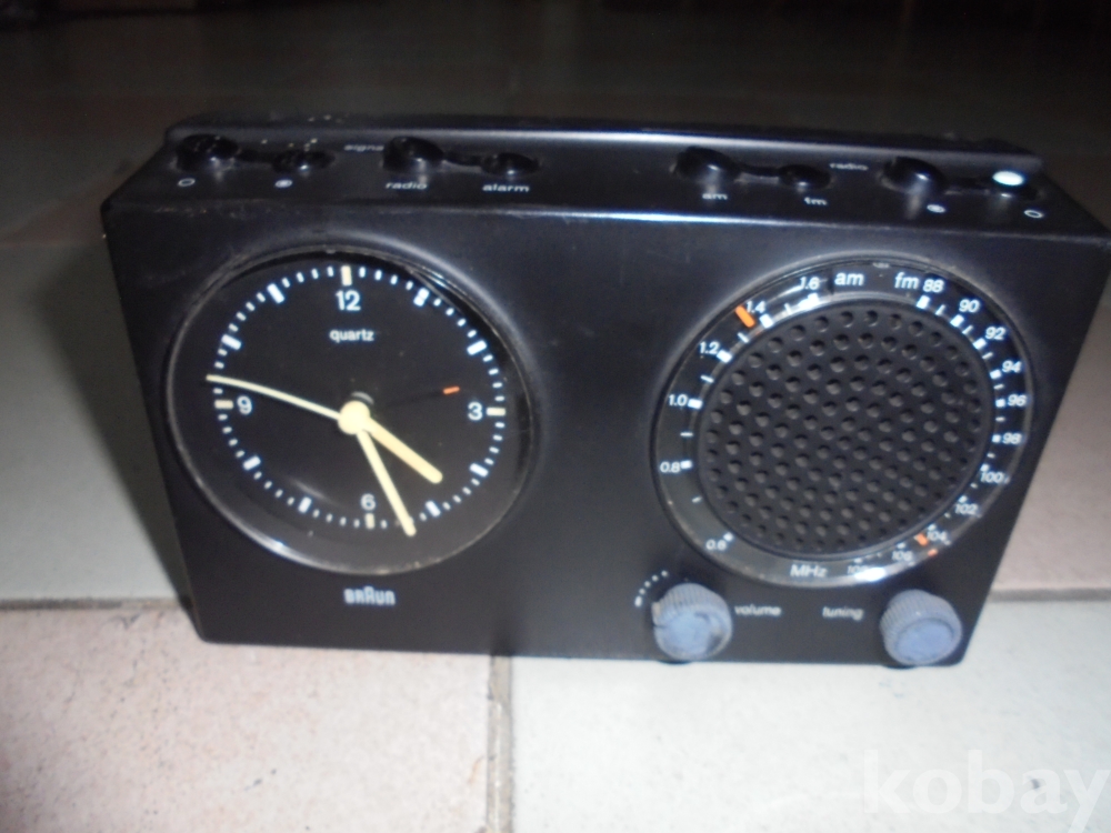 작은 후라시약 4개들어가 작동여부알수 없는 라디오와 시계도겸하는 부라운 독일산 후라시약넣는 라디오와 시계