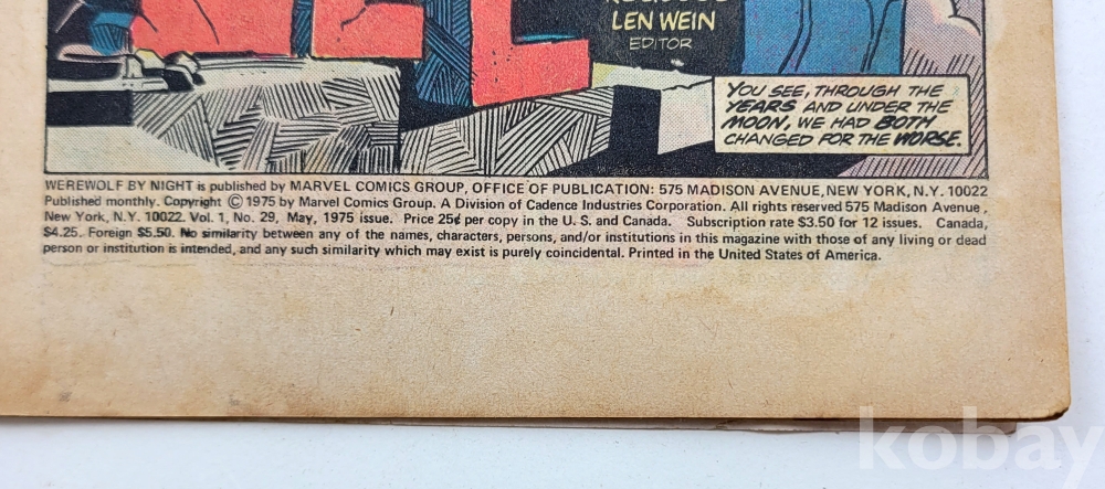 물 품 명 | WEREWOLF by NIGHT / Vol.1 #29 May. 1975 / MARVEL COMICS GROUP / 미국 |