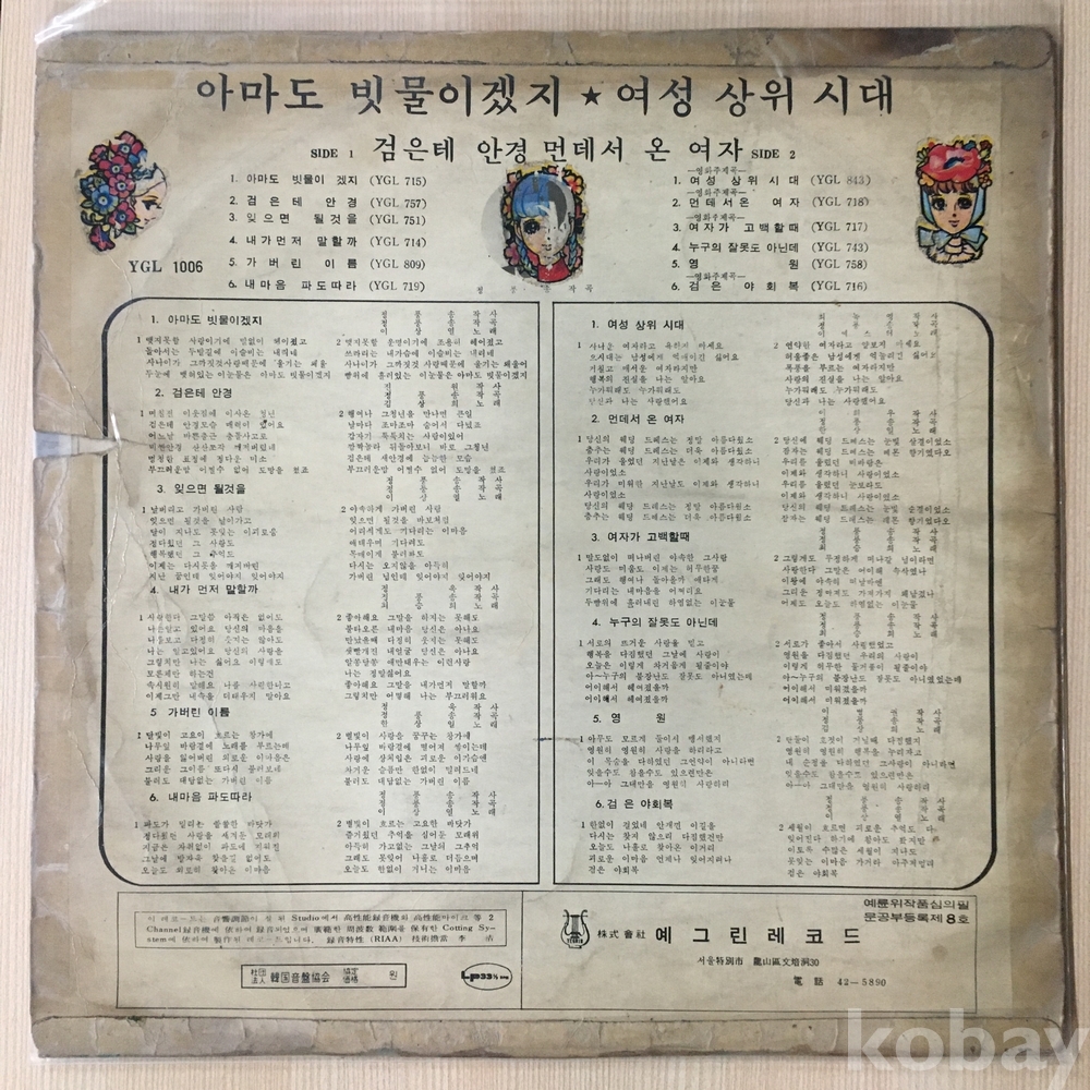 . 가요음반 대부분은 휘어짐이나 손상을 방지하기 위해 무지싱글자킷을 하나 더 사용하여 보관되었던 음반들입니다.