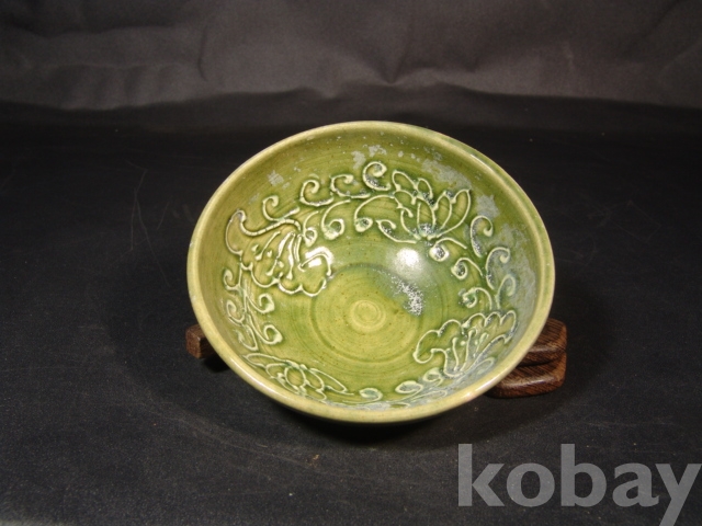 do4487 길주요(吉州窯) 녹유양각 화문다완(花紋茶碗)