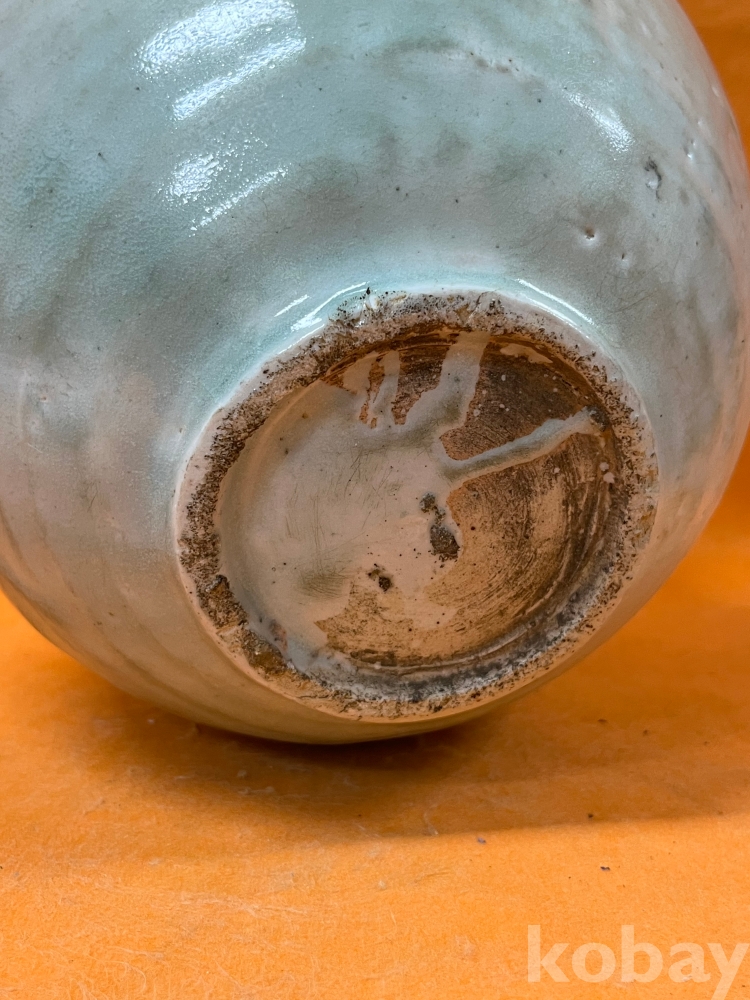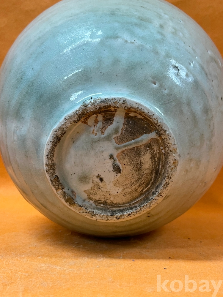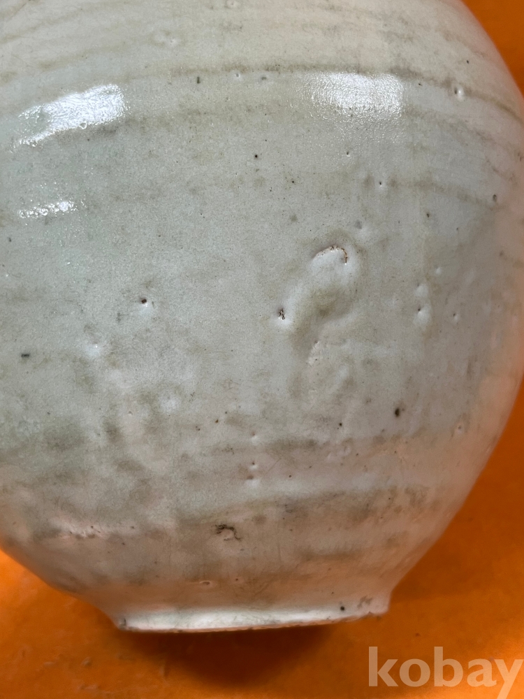 유약 상태를 보면 바닥 중앙 무시유이고 주변부에 유약흘림이 나타난 점 .
