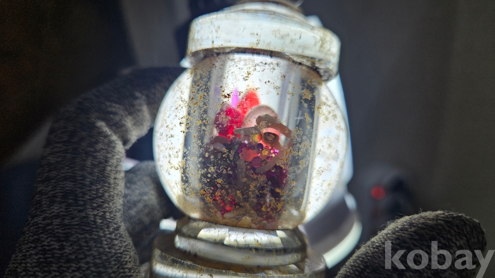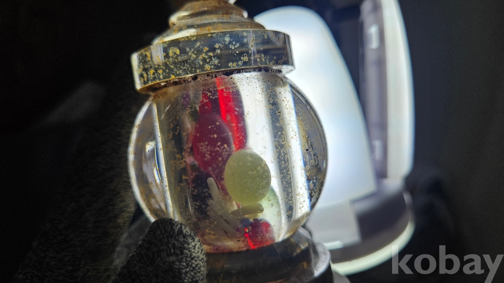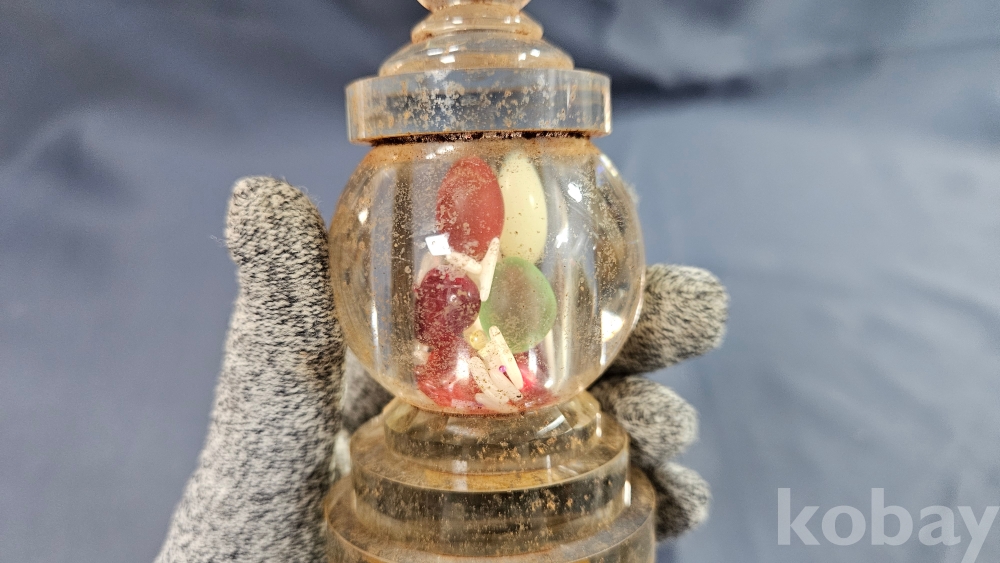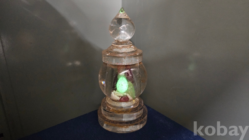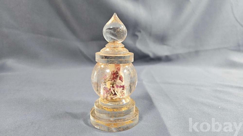 안에 다양한 구슬이 들어있는 사리함 입니다.