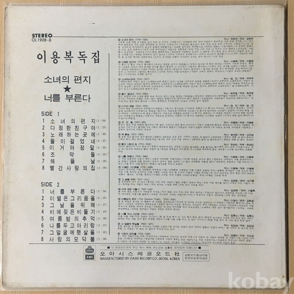 이용복 독집 - 소녀의 편지/너를 부른다