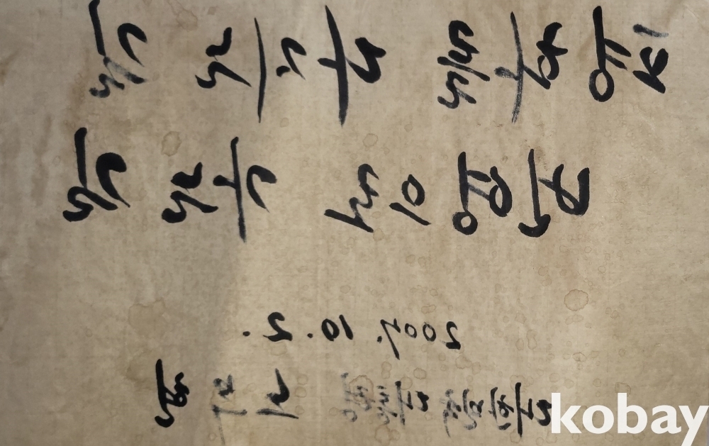 노무현 전 대통령 수결이 보이는 종이에 먹(墨) 서예입니다