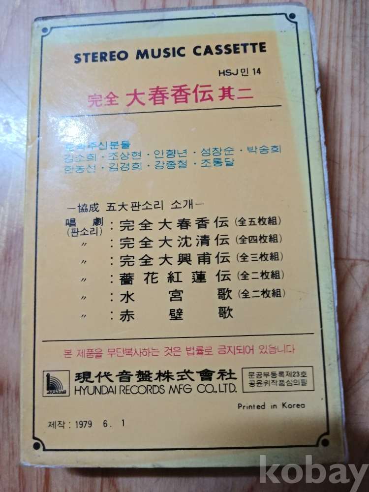 카세트테이프 대춘향전 5점 모델신성일 남정임 79년제작 3편에 상단종이뜯김이있읍니다